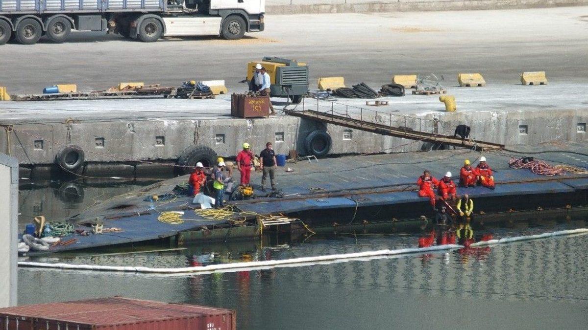Batan Türk Bandıralı Geminin Yükü Denizden Çıkarılıyor