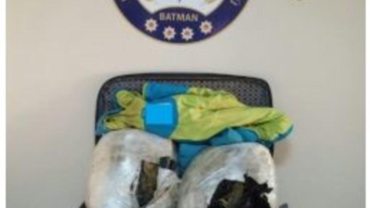 Batman’da bir yolcu otobüsünde yapılan aramada, 15 kilo 500 gram esrar ele geçirildi.Konuya ilişkin İl Emniyet Müdürlüğü’nden yapılan açıklamada, Kaçakçılık ve Organize Suçlarla Mücadele Şubesi Uyuşturucu ile Mücadele Şube Müdürlüğü ekiplerinin durdurduğu bir yolcu otobüsünde arama yaptığı bildirildi. “Sarıkız” isimli narkotik köpeğin yardımı ile yapılan aramada, aracın bagaj kısmındaki elbise valizine gizlenmiş 15 kilo 500 gram esrar maddesinin ele geçirildiğine dikkat çekilen açıklamada, olayla ilgili gözaltına alınan bir kişinin tutuklanarak Batman Cezaevine gönderildiği kaydedildi.