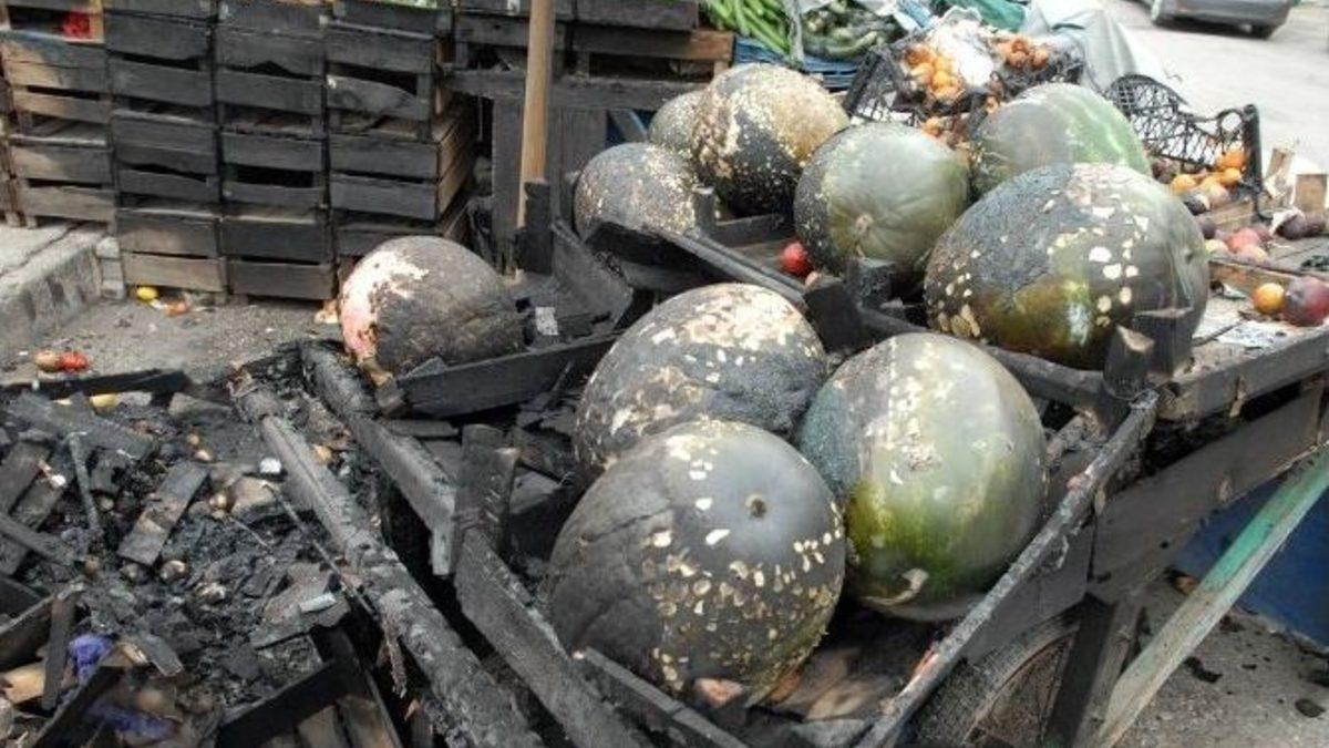 Batman’da 5 meyve ve sebze tezgahı kundaklandı. Polis, saldırgan ya da saldırganların yakalanması için çok yönlü soruşturma başlattı.Olay, Bahçelievler Mahallesi’nde meydana geldi. Edinilen bilgilere göre, dün gece saatlerinde, kimliği belirlenemeyen kişi ya da kişiler tarafından, eski ilçe otogarı önünde bulunan 5 meyve ve sebze tezgahı kundaklandı. Yangını, fark eden bir inşaat işçisi, durumu itfaiyeye bildirdi. Olay yerine gelen itfaiye ekipleri yangını kısa sürede söndürürken, tezgahlar ile üzerlerinde bulunan meyve ve sebzeler zarar gördü.Tezgahı yanan seyyar satıcılardan Sabri Özel, “Dün gece saat 02.00’de tezgahımız yakıldı. Haberimiz yoktu telefonla bizi arayıp, tezgahlarımızın yandığını söylediler. MOBESE kameralarına baktık, hiçbir şey gözükmüyordu. 11 bin lira zararımız var. 10 senedir burada esnaflık yapıyoruz ilk defa böyle bir şey oluyor” dedi.Polis, olayla ilgili çok yönlü soruşturma başlattı.
