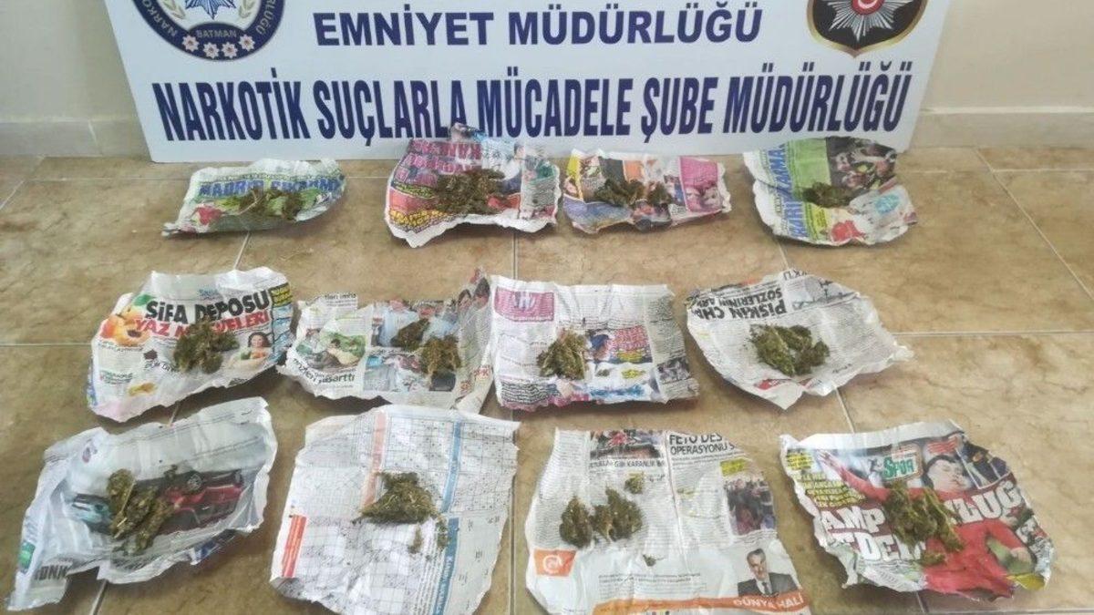 Batman Emniyet Müdürlüğü Narkotik Suçlarla Mücadele Şube Müdürlüğü ekipleri tarafından yapılan bir operasyonda 172 gram esrar maddesi ele geçirdi.Batman Emniyet Müdürlüğünden yapılan açıklamada, konu ile ilgili gözaltına alınan 2 şahsın adli makamlara sevk edildiği belirtildi. Açıklamada, “ilimiz genelinde toplum sağlığını tehdit eden ve gençleri hedef alan uyuşturucu madde ticareti yaparak geçimini sağlayan zehir tacirlerine yönelik olarak planlı ve projeli çalışmalar yapılmaktadır. İlimiz Çarşı Mahallesinde bulunan tandır ve çevresinde şüpheli hal ve hareketler sergileyen 1’i yaşı küçük 2 şüpheli şahsın üzerinde ve çevrede yapılan aramada satışa hazır halde paketlenmiş toplam ağırlığı 172 gram gelen uyuşturucu esrar maddesi ele geçirilmiştir. Konu ile ilgili olarak yakalanarak gözaltına alınan şüpheli şahıslar hakkında tesis edilen işlemlerin ardından adli makamlara sevk edilmiştir” denildi.