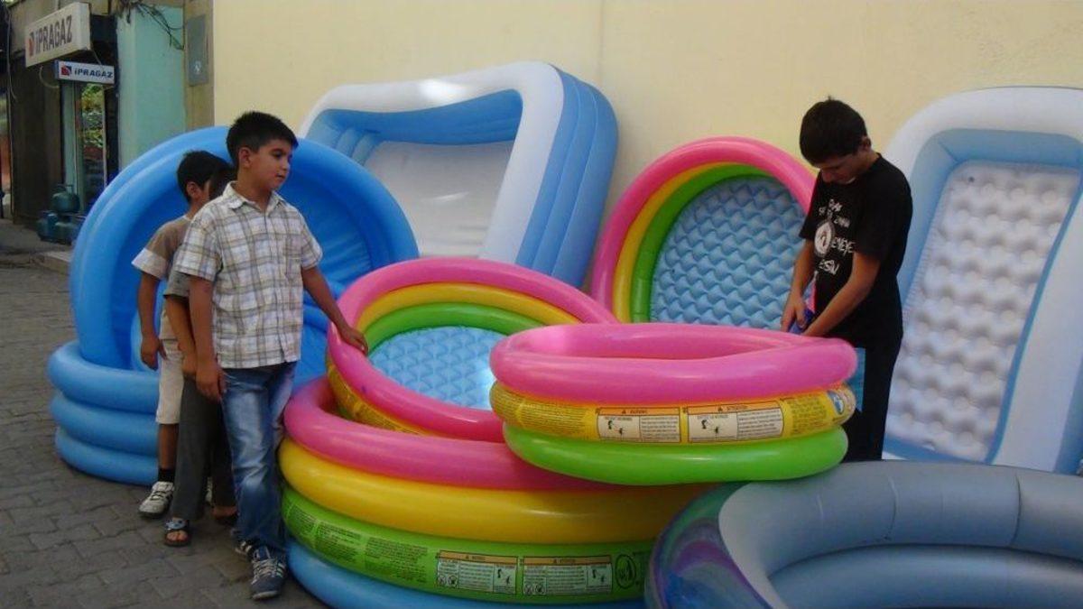 Bahçe, dam ve teraslara kurulan şişme havuzlar aynı zamanda çocuklara eğlence kaynağı oluyor. Bu yıl aşırı sıcaklar nedeniyle şişme havuzlara talebin oldukça yüksek olduğunu belirten esnaf, "Değişik boylarda 5 liradan 100 liraya kadar olan havuz çeşitleri var. Her çeşide talep var. Aileler bahçeye dama veya terasa rahatça kuruyor. Küçük çocuklar hem serinliyor, hem eğleniyor hem de yüzme öğreniyor. Büyük boylarına aileler de giriyor. En önemlisi çocukları gözlerinin önünde tehlikeden uzak güvenli bir şekilde serinliyor." dedi.