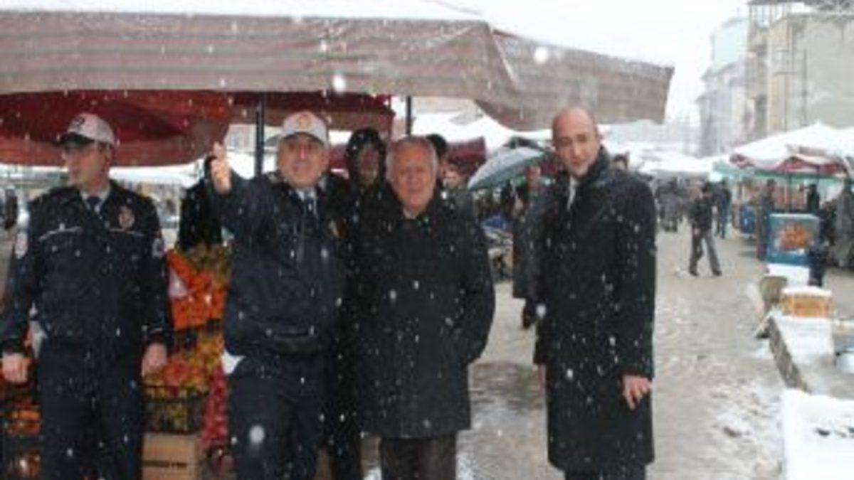 Bayburt Emniyet Müdürü Celal Aydoğan, pazartesi günü Gençosman Mahallesinde kurulan halk pazarını gezerek esnafla alınması gereken güvenlik tedbirlerini görüştü. Esnaf Emniyet Müdürü Aydoğan'dan pazar girişindeki trafik sorununa çözüm bulmasını istedi.