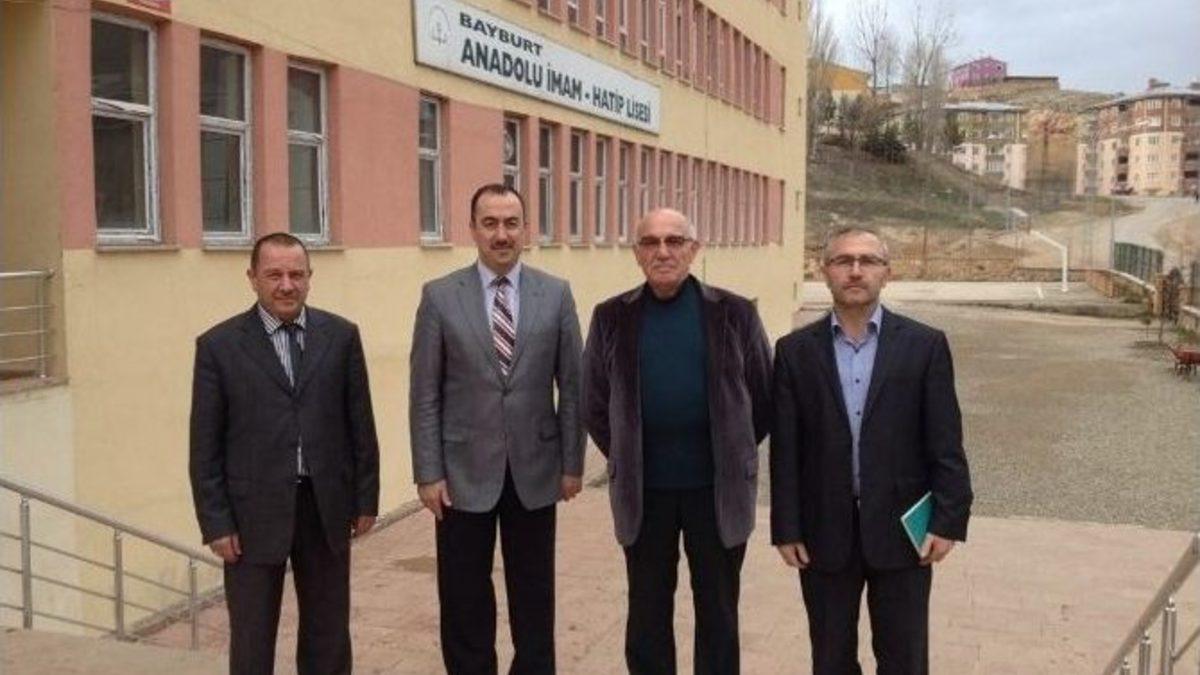 Bayburt İlahiyat Fakültesi Dekanı Prof. Dr. Nasrullah Hacımüftüoğlu ve İlahiyat Fakültesi Dekan Yardımcısı Yard. Doç. Dr. Yusuf Şen Bayburt Anadolu İmam Hatip Lisesini ziyaret ettiler.Anadolu İmam Hatip Lisesi Müdürü Murat Öksüzer ve Müdür Yardımcıları M.Öcal Varınca ve Adem Durulmuş’un hazır bulunduğu ortamda konuşan Hacımüftüoğlu, 8-12 Mayıs 2015 tarihinde Bayburt’ta, bütün illerin İlahiyat Fakültesi dekanlarının hazır bulunacağı, ‘Nasıl Bir İlahiyatçı Hedefliyoruz?’ sorusunun cevabının aranacağı, kapsamlı konferans ve paneller düzenleyeceklerini belirterek, Anadolu İmam Hatip Müdürü Öksüzer’in de panelist katılacağı program hakkında fikir alışverişinde bulundu.Bayburt İlahiyat Fakültesi Dekanı Prof. Dr. Nasrullah Hacımüftüoğlu, “Sosyolog Ümit Meriç’in Konferans vereceği, ayrıca dalında uzman bir çok kişinin panelist olarak katılacağı, ayrıca İmam Hatip Lisesi Müdüründen Öğretmenine; Öğrencisinden Velisine, ‘Nasıl Bir İlahiyatçı Hedefliyoruz?’ sorusunun muhataplarına soru sorarak , herkesin ortak düşüncesinin alınacağı panel hedeflenmektedir.” Dedi. Hacımüftüoğlu bu açıdan muhatap olan herkesin burada hazır bulunmalarının öneminden bahsederek, tabandan İlahiyat Fakültesine gelecek öğrencinin, artı ona destek veren velisinin, öğretmeninin ve öğrenci üzerinde emeği geçen herkesin görüşleri alınarak, bu amaca uygun olarak İlahiyat Fakültelerin de gereken düzenlemeleri gerçekleştirerek, geleceğimizin teminatı evlatlarımıza, istedikleri ve hedefledikleri fakülteleri hazır bulmalarını sağlamayı hedeflediklerini belirtti.Anadolu İmam Hatip lisesi Müdürü Murat Öksüzer ve Müdür Yardımcıları M.Öcal Varınca, Adem Durulmuş, gerek Öğretmen gerekse öğrenci-veli olarak bu etkinliğe katkı sağlayacaklarını belirterek, Dekan Nasrullah Hacımüftüoğlu ve Dekan Yardımcısı Yusuf Şen’e, Ziyaretlerinden dolayı teşekkür ettiler.