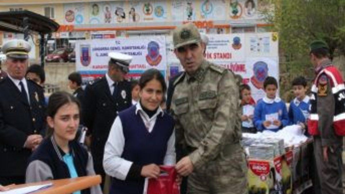 "Karayolu Güvenliği ve Trafik Haftası" kutlamaları kapsamında Bayburt'ta İl Jandarma Komutanlığı, İl Emniyet Müdürlüğü ve Karayolları Müdürlüğü tarafından trafik standı açıldı. Bayburt Belediyesi tarafından da öğrenci ve vatandaşlara tişört ve şapka dağıtıldı.