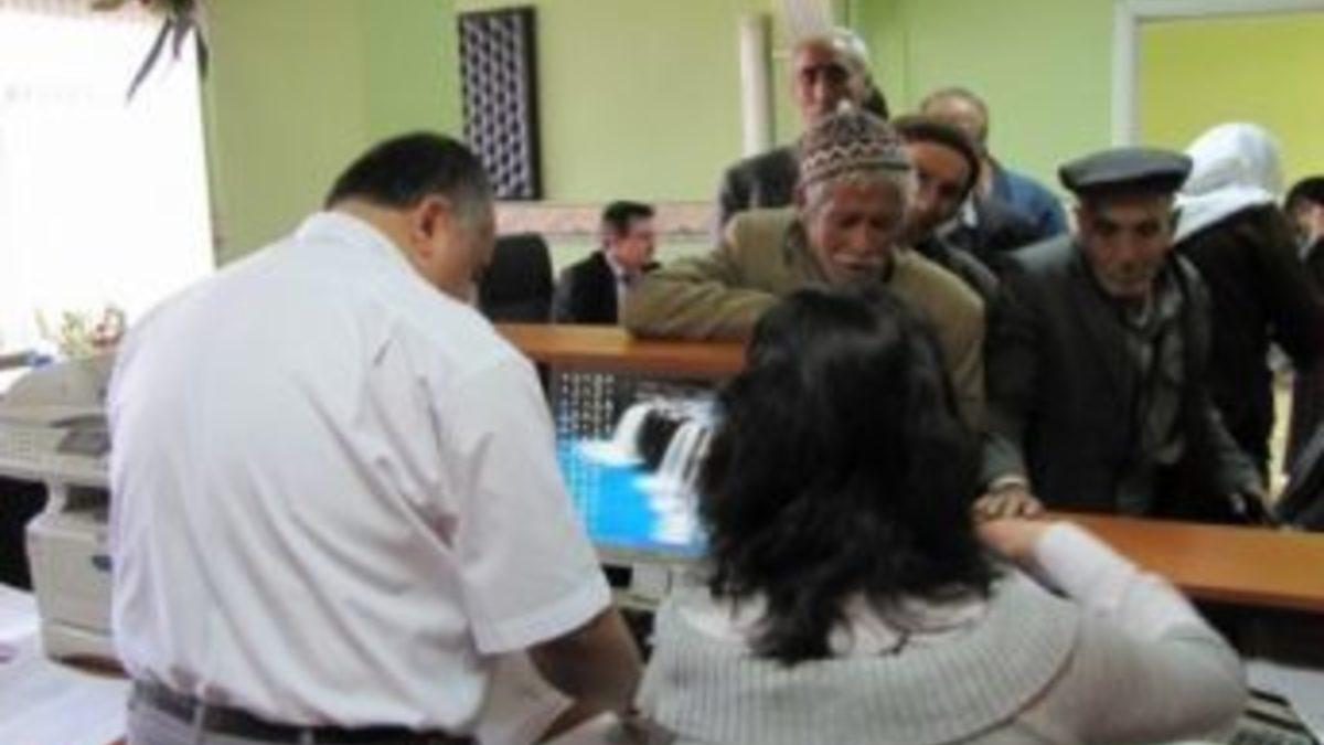 Hak sahiplerine Hisarcık Sosyal Yardımlaşma ve Dayanışma Vakfından aldıkları belge karşılığı Ziraat Bankası Şubesince 100’er lira ödeme yapılıyor.