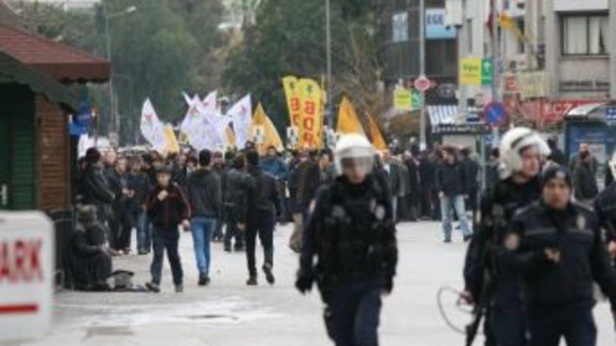 BDP İzmir İl Teşkilatı üyeleri, Cenevre-2 toplantısına Suriyeli Kürtlerin davet edilmemesini protesto etti.Bir grup BDP’li, Suriye’deki iç savaşı durdurmak için düzenlenecek olan toplantıya Suriyeli Kürt temsilcilerin davet edilmemesini protesto etti. Protestocular, BDP İl Başkanlığı önünden Konak Meydanı'na kadar yürümek istedi. Polis, grubun yürüyüş yapmasına izin vermeyerek, Şair Eşref Bulvarı'na çıkışı kapattı.Polisin TOMA’larla önlem alması üzerine protestocularla polis arasında kısa süreli bir arbede yaşandı. Polis daha sonra grubun Basmane Meydanı’na yürümesine izin verdi. Teröristbaşı Abdullah Öcalan posterleri taşıyan ve sloganlar atan grup, Kültür Park Fuar Alanı Basmane Kapısı önünde toplanarak basın açıklaması yaptı. Basın açıklaması sonrası grup olaysız bir şekilde dağıldı.