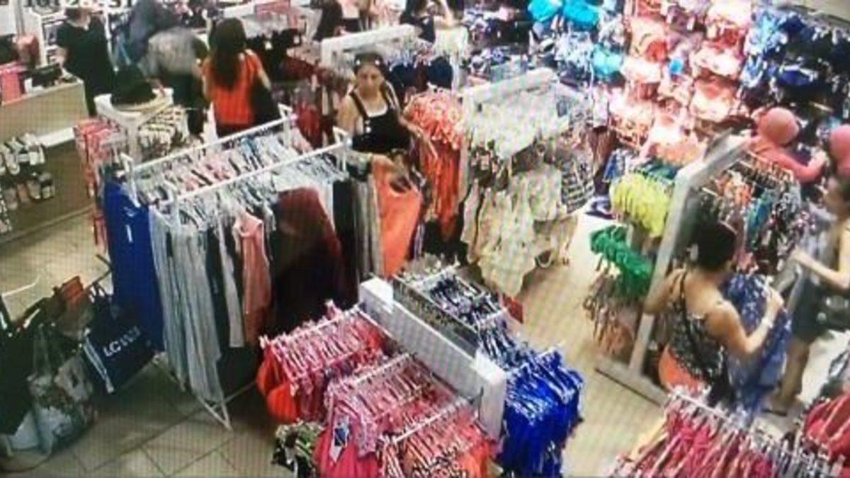 Sağlık kontrolü sonrasında ifadesine başvurulmak üzere Asayiş Şube Müdürlüğü'ne getirilen şüphelilerin hırsızlık anı da güvenlik kameralarına yansıdı. Görüntülerde, mağaza içinde bulunan bebek arabasının etrafını iki şüpheli perdeleme yöntemi ile kapatırken diğer kadın elbise arasına çantayı alıyor. Daha sonra çantayı müşterilerin az olduğu bir yerde kendilerine ait çantanın içine koyan şüpheliler, alışveriş merkezinden ayrılıyor.