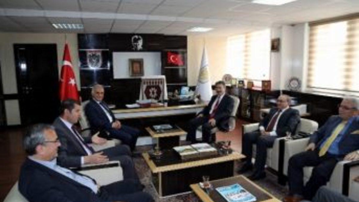 Sivas Belediyesi Başkan yardımcıları, İl Özel İdaresi Genel Sekreteri Salih Ayhan’a iade-i ziyarette bulundu.30 Mart yerel seçimlerinin ardından belediye başkan yardımcılığı görevine getirilen Ahmet Özaydın, Abdürrahim Ceyhan, Hüseyin Naci Süha ve Mahir Kuzucu; Genel Sekreter Ayhan ile makamında bir araya geldi. Sıcak ve samimi havada gerçekleşen ziyarette iki kurumun işbirliği ve diyalog çalışmalarına değinildi.Belediye Başkan Yardımcısı Hüseyin Naci Süha, Ayhan’a daha önce Sivas Belediyesi’ne yaptığı ziyaretten ötürü teşekkür ederek, “İl Özel İdaremiz ilimizde önemli bir görev üstlenmektedir. İki kurumun sık sık bir araya gelerek çalışmalar yapması gerektiğini düşünüyorum. İlişkilerimizin iyi olması halkımıza da hizmet anlamında en iyi şekilde yansıyacaktır” dedi.Seçimlerin ardından yeni bir irade şekillendiğini dile getiren İl Özel İdaresi Genel Sekreteri Salih Ayhan, “Hepimiz birbirimizi iyi tanıyoruz. İl Özel İdaresi ve belediye insanın var olduğu her yere hizmet götüren iki köklü kurumdur. Ortaya koyacağımız yakın diyalog ve güzel iş birliği hepimize en verimli şekilde yansıyacaktır. İnşallah idare olarak bu yıl geçmiş dönemden daha çok çalışma içerisinde olacağız. Müşterek anlamda yürüttüğümüz işlerimiz var. Bu manada sürekli diyalog halinde olacağız. Bu birlikteliğin devam etmesi de ilimize güzel kazanımlar sağlayacaktır” diye konuştu.