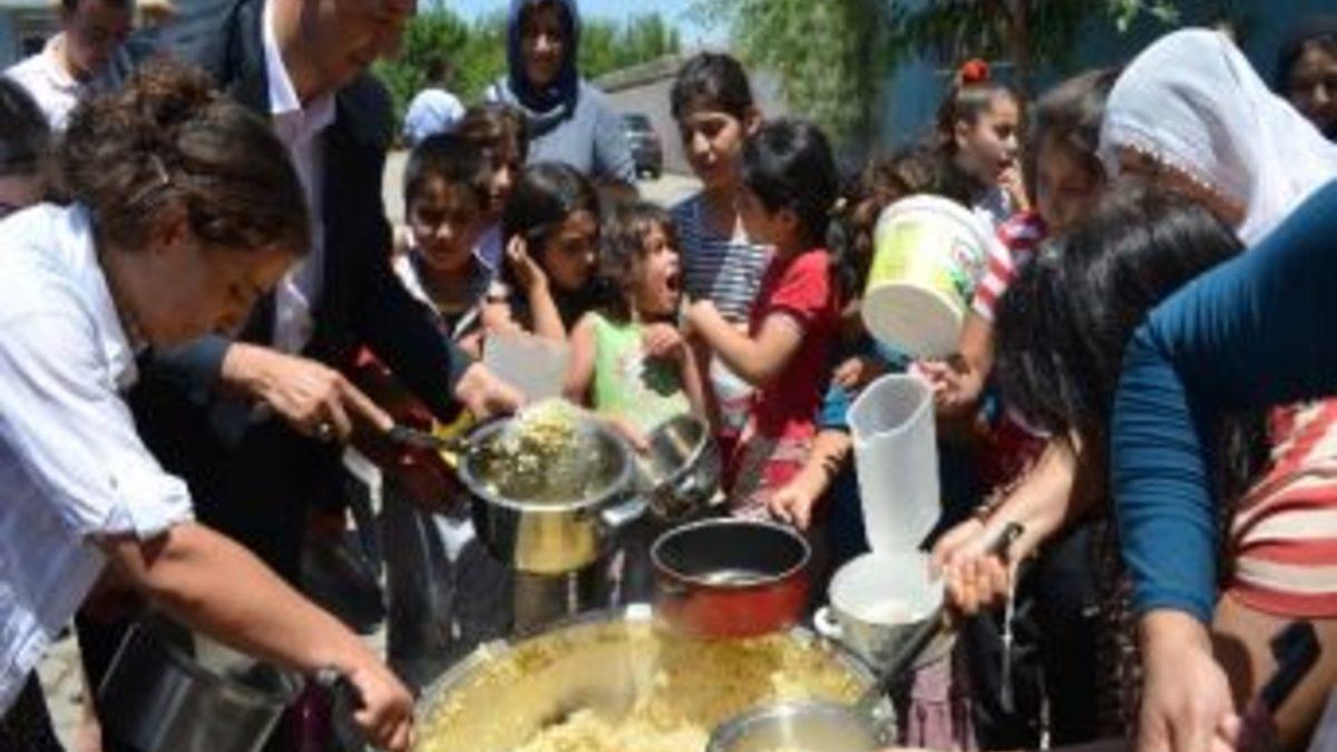 Diyarbakır’ın Sur ilçesine bağlı Hasırlı Mahallesi’nde, geniş bir alanda mahalle sakinleri için iki kazan Danok kaynatıldı.