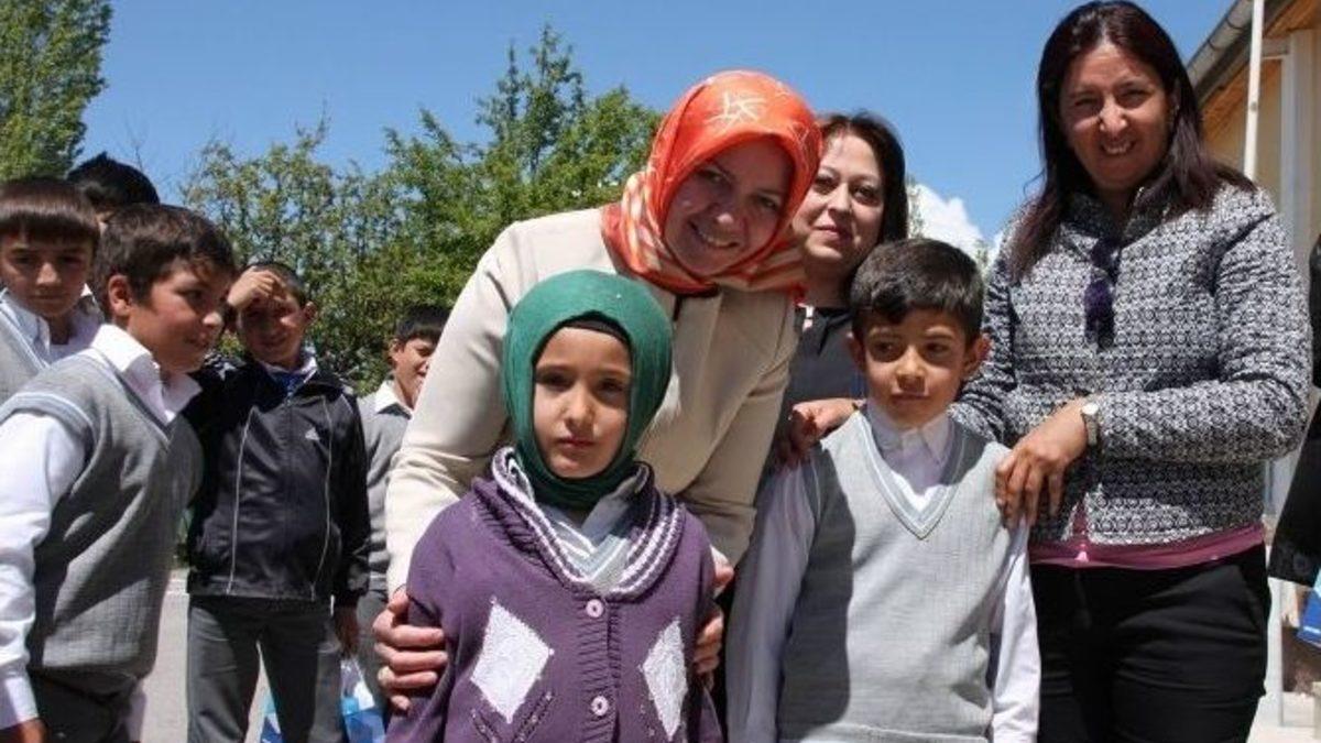 Sivas Belediye Başkanı Sami Aydın’ın eşi Yurdagül Aydın köy çocuklarına çeşitli hediyeler vererek onları sevindirdi.Yurdagül Aydın, Esenyurt Mahallesi Ahmet Türkseven İlkokulu ve Ortaokulu’nu ziyaret ederek, köylerden her gün servislerle okula gidip gelen öğrencilere çeşitli hediyeler verdi.Aydın tarafından öğrencilere Mehmet Akif Ersoy’un ’Genç Safahat’ adlı kitabı, tişört, diş macunu, fırçası ve el sabunu hediye edildi. Yurdagül Aydın’a, AK Parti Kadın Kolları Başkanı Semiha Ekinci, Sivas Belediyesi Meclisi Üyesi Ayla Çetinel ile Kültür ve Sosyal İşler Müdürü Ahmet Dağüstü eşlik etti.Belediye Başkanı Sami Aydın’ın eşi Yurdagül Aydın, bir sınıfta ders kitabından şiir okuyan öğrencileri dinledi ve Suriyeli bir öğrencinin yanına oturup onunla sohbet etti.