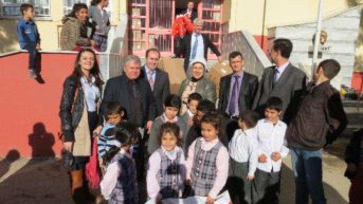 Milli Eğitim Müdürlüğü’ nün Okul Müdürleri ile yaptığı çalışma neticesinde tespit edilen 251 çocuğun yaş, beden ve ayak numaralarına göre hazırlanan hediye paketleri Fevzi Çakmak İlköğretim okulunda çocuklara verildi.