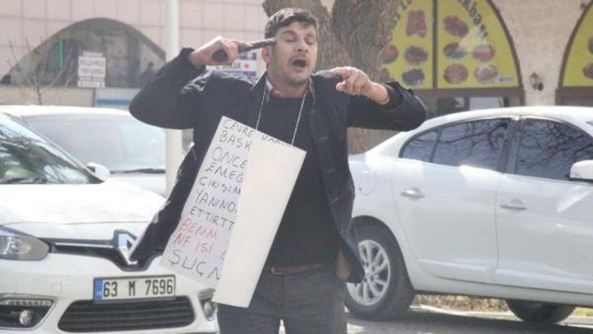 Ömer ŞULUL- Ömer PINAR/ ŞANLIURFA, Şanlıurfa Büyükşehir Belediyesi'ne bağlı Çevre Koruma ve Kontrol Dairesi'nde 8 yıldır taşeron firma bünyesinde işçi olarak çalışan İbrahim Halil A., geçen ay açıklanmayan nedenle işten çıkarıldı. İşten çıkarılmasına tepki gösteren İbrahim Halil A., öğleden sonra boynuna döviz asıp belediye önüne geldi. Başkanlık girişinde başına kuru sıkı tabanca dayayan İbrahim Halil A., yeniden işe alınmasını isteyerek, aksi halde intihar edeceğini söyledi. Çevredekilerin ihbarıyla gelen polisler, güvenlik önlemi alıp vatandaşları uzaklaştırdı.