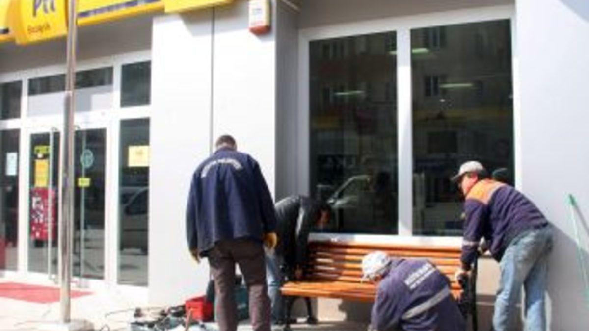 Bilecik'in Bozüyük ilçesinde Merkez PTT ve OEDAŞ binalarının önüne, yorulan vatandaşların oturup dinlenmeleri amacıyla oturma bankları yerleştirildi.