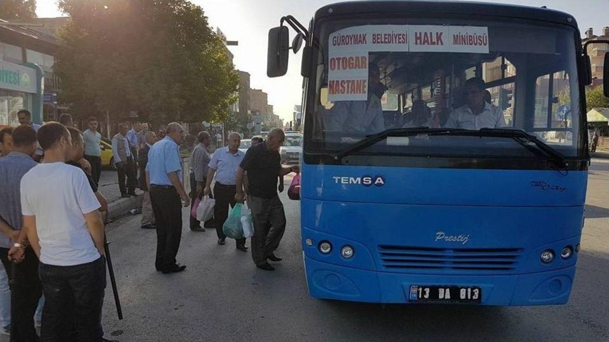 Bitlis’in Güroymak Belediyesi, Kurban Bayramı nedeniyle toplu ulaşım hizmetlerini ücretsiz verecek.Toplu taşıma araçları, 30 Ağustos gününden başlayarak,4 Eylül tarihine kadar kurban bayramı nedeniyle 6 gün vatandaşları ücretsiz taşıyacak. Güroymak Kaymakamı ve Belediye Başkan vekili Ufuk Özen Alibeyoğlu, Kurban Bayramı nedeniyle vatandaşların rahat ve konforlu yolculuk yapmaları için ücretsiz toplu taşıma hizmetini vereceklerini söyledi. Alibeyoğlu,"Belediyemiz tarafından toplu taşıma araçları, 30 Ağustos ile 4 Eylül tarihleri arasında vatandaşlarımızı ücretsiz taşıyacak.Kurban Bayramında Belediyemiz tam kapasite ile çalışılacak.Ayrıca Bayram tatili boyunca, belediyemizin, itfaiye amirliği, su işleri, temizlik işleri, zabıta görevlileri ve diğer bölümler halkımıza hizmet vermeye devam edecek. Halkımız huzur ve refah içinde bir Bayram geçirmeleri için, Belediye olarak her görevi yapmaya devam edeceğiz" dedi.