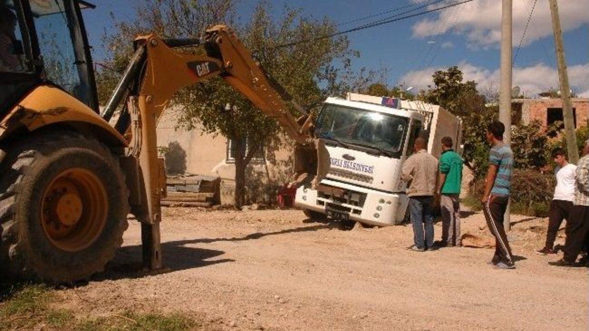 Osmaniye’nin Kadirli ilçesinde belediye ekipleri tarafından çalışma yapılan yola düşen belediyeye ait araç yine belediyenin kepçesi tarafından çıkarıldı.İlginç olay Orhan Gök Mahallesi 1837 Sokakta meydana geldi. Kadirli Belediyesi Fen İşleri Müdürlüğüne bağlı ekipler stablize yolda kanalizasyon çalışması için kazı yaptılar. Çalışmalar esnasında belediyeye ait bir başka araç sokağa girmeye çalışırken kazı yapılan yola tekerlekleri saplandı. Uzun süre kurtarılmayı bekleyen araç daha sonra yine belediyeye ait kepçe ile düştüğü çukurdan çıkarıldı.