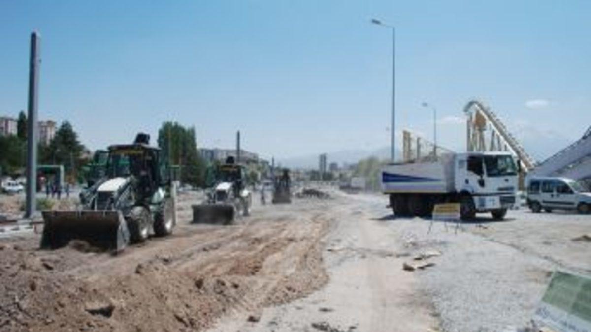 Kayseri Büyükşehir Belediyesi'nin Mimarsinan Kavşağı ile İldem arasındaki raylı sistem güzergahında sürdürdüğü yol çalışması yoğun...