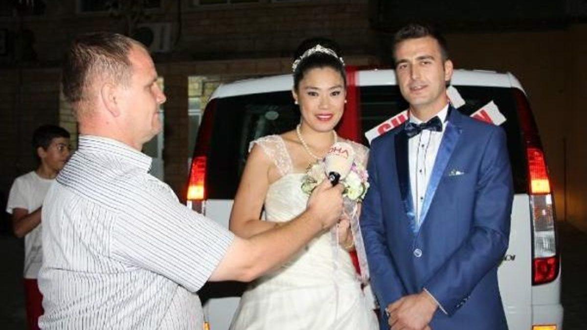 Cevdet ŞEN/BERGAMA Bergama'nın Yenikent Mahallesi'nde yaşayan turist rehberi Serkan Demirbaş, bir grup gezisi sırasında tanıştığı Japon Shoco Shimomura'ya gönlünü kaptırdı. Arkadaşlıklarını ilerleten ve 1 ay önce Japonya'da nikahları kıyılan çift, Yenikent Mahallesi Düğün Salonu'nda yapılan davullu, zurnalı düğünle evlendi. Türk müziklerine alıştığı gözlenen Shoco Shimomura, performansı ile salonda bulunan misafirlerden tam not aldı. Shimomura, "Serkan'ı çok sevdim hepinize teşekkür ederim mutluyum" derken, Serkan Demirbaş da duygularını şöyle dile getirdi: