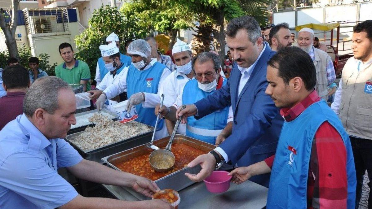 Hatay’ın Reyhanlı ilçesinde Beşir Derneği ile Reyhanlı Belediyesi tarafından ihtiyaç sahibi Türk ve Suriyeli 5 bin kişiye iftarlık dağıtımı yapılıyor.Reyhanlı Belediye binası önündeki alana gelen Beşir Derneği’ne ait mobil aşevinden günlük iftarlık çıkarılması ile ilgili bilgi veren dernek genel müdürü Fatih Sarıyar, Ramazan ayında mobil aşevinden 5 bin kişiye sıcak yemek üretip Suriyeli ve diğer ihtiyaç sahibi ailelere dağıttıklarını söyledi. Genel Müdür Sarıyar, ayrıca derneğe ait fırında ürettikleri ekmeklerle beraber ailelere kişi başına yetecek kadar sıcak yemek verdiklerini belirtti. Sarıyar, “Kişi başına yeteri kadar yemek veriyoruz. Her gün saat 18.00’de Reyhanlı’da yaşayan ihtiyaç sahipleri buradan gelip yemeklerini alıyorlar ve iftarlarını gönül rahatlığı ile yapabiliyorlar. Buradaki çalışma Beşir Derneği ile Reyhanlı Belediyesinin katkılarıyla yapılan bir çalışmadır. Her gün 5 bin kişilik yemek çıkartarak insanların ihtiyaçlarını karşılamaya gayret ediyoruz. Devletimiz, STK’larımızla, 6 yıl boyunca Suriyeli misafirlerimize bu hizmetleri aralıksız olarak devam ettiriyoruz. Ramazanı en iyi şekilde değerlendirmek Ramazanda insanların iftar sofralarını neşelendirmek bereketlendirmek için buradayız. Katkılarından dolayı bağışçılarımıza teşekkür ediyoruz. Dernek olarak sadece Reyhanlı’da değil Türkiye’mizin diğer noktalarında ihtiyaç sahiplerine hizmet etmeye devam edeceğiz” diye konuştu.