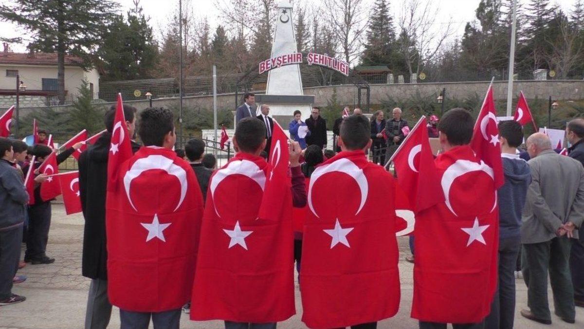 Konya’nın Beyşehir ilçesinde, Mehmet Akif Ersoy İmam Hatip Ortaokulu öğrencileri ve Okul Aile Birliği, İlçe Milli Eğitim Müdürlüğünce hayata geçirilen “Değerler Eğitimi” projesinde “Vatan Sevgisi, Şehitlere Saygı ve Dua” etkinliği gerçekleştirdi.Mehmet Akif Ersoy İmam Hatip Ortaokulundan başlayan yürüyüş Şehitlik Anıtı önünde son buldu. Burada saygı duruşunda bulunulmasının ardından İstiklal Marşı okundu. İlçe Müftüsü Mahmut Çelikoğlu’nun Kur’an-ı Kerim tilavetinin ardından okul öğrencilerinin ve velilerinin okudukları hatimlerin duası yapıldı. Okul Aile Birliği Başkanı Sadullah Sabırlı yaptığı açıklamada, “Hayat, uğruna yaşayacak ve gerekirse ölünecek değerlerimiz varsa anlamlı ve amaçlıdır. Allah’a şükürler olsun ki bizim de uğrunda yaşayacağımız ve öleceğimiz, din gibi, ezan gibi, vatan gibi, bayrak gibi değerlerimiz var. Şanlı tarihimiz ve aziz şehitlerimizden aldığımız bu değerlerin manevi zırhını kuşanan, başta burada bulunan gençler ve tüm vatan evlatlarımızın, bu ruhu gelecek nesillere taşıyacaklarından hiç şüphemiz yoktur. Biz de okulumuz Mehmet Akif Ersoy İmam Hatip Ortaokulu Okul Aile Birliği olarak, İlçe Milli Eğitim Müdürlüğünce hayata geçirilen ‘Değerler Eğitimi’ projesinde ayın değeri olan ‘Vatan Sevgisi, Şehitlere Saygı Ve Dua’ etkinliği yapmayı planladık. İnşallah bu etkinliğimiz vatan sevgisi ve şehitlik konusunda farkındalığa katkıda bulunur ve hayırlara vesile olur” dedi.Etkinliğe, İlçe Milli Eğitim Müdürü Musa Konuk, İlçe Müftüsü Mahmut Çelikoğlu, Okul Aile Birliği, veliler ve öğrenciler katıldı.