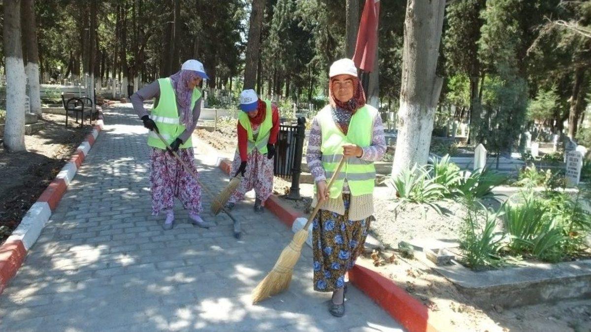 Balıkesir’in Bigadiç ilçesinde, Belediye, mezarlıkların bakımına özen gösterirken, mezarlıkların temizliğinde kadınlar görevlendirildi. Balıkesir İş-Kur İl Müdürlüğünün işe aldığı 40 kadından bir bölümü mezarlıkların temizliğini yapmaya başladı.Belediye bünyesinde çalışan kadınlar, kırsal mahalle mezarlıklarının da bakımını da üstlenirlerken, çalışmaları ile takdir topladı. İlçedeki eski merkez mezarlığının temizliğini yapan Safiye Berberoğlu, Aysel Temre ve Hatice Çelik, işlerini severek yaptıklarını söylediler. Belediye de park ve bahçe işlerinde görev aldıklarını anlatan Safiye Berberoğlu. ”İş-Kur vasıtasıyla geçici de olsa iş bulmanın sevincini yaşıyoruz. Park ve bahçe işlerinde çalışmanın yanı sıra, mezarlıkların temizliğini yapıyoruz. Mezarlıkları bayram öncesi temizledik. Şimdi gene temizlik yaparken, çiçeklerin çapasını ve sulamasını yaptık. İşimizi severek yapıyoruz” dedi. Belediye Başkanı İsmail Avcu’ kadınların çalışmalarından çok memnun olduklarını kaydetti.