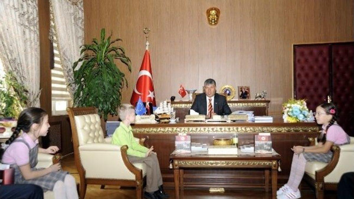 Bilecik'te İlköğretim Haftası kutlamaları nedeniyle İl Milli Eğitim Müdürü Süleyman Şişman ve beraberindekiler Vali Halil İbrahim Akpınar'ı makamında ziyaret etti.Vali Akpınar, İl Milli Eğitim Müdürü Şişman, Müdür Yardımcısı Enver Kandil ve Atatürk İlköğretim Okulu Müdürü İsmail Işık ile öğretmen ve öğrencileri kabulünde, 2013-2014 eğitim ve öğretim yılının başarılı geçmesi temennisinde bulundu.İl Milli Eğitim Müdürü Şişman da, Bilecik genelinde 9 bağımsız anaokulu ve değişik kurumlarda okul öncesi 2 bin 785 öğrenci, 50 ortaokul ve 62 ilkokulda 22 bin 548 öğrenci ile 38 ortaöğretim kurumunda da 11 bin 115 olmak üzere 36 bin 443 öğrencinin eğitim göreceğini bildirdi.Vali Akpınar, ziyaret anısına öğretmen ve öğrencilere ili tanıtıcı hediyeler takdim etti.Milli Eğitim Müdürü Şişman ve beraberindekiler daha sonra Vali Yardımcısı Süleyman Deniz'i ziyaret etti.Öte yandan İlköğretim Haftası kutlamaları nedeniyle Cumhuriyet İlköğretim Okulu Müdürü Osman Gürbüz, öğretmen ve öğrenciler İl Milli Eğitim Müdürü Şişman'ı ziyaret ederek çiçek hediye etti.