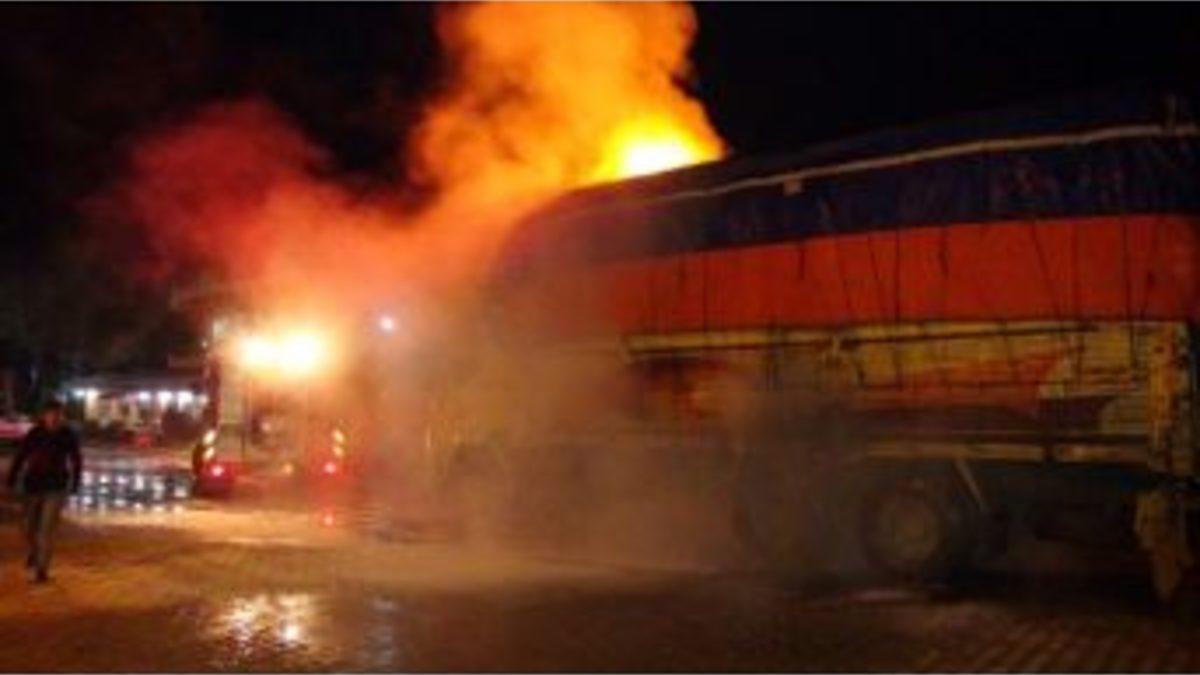 Bilecik'te, seyir halindeyken aniden alev alan TIR, korku dolu anların yaşanmasına sebep oldu.Edinilen bilgiye göre, Yaşar Özcan yönetimindeki 03 EU 108 plakalı TIR, Başköy kavşağında arka lastik bölgesinden alev alarak yanmaya başladı. Durumun haber verilmesi üzerine olay yerine gelen itfaiye ekiplerince söndürme çalışması başlatıldı. Ekiplerin 20 dakikalık çalışması sonucu yangın söndürülüken, araçta maddi hasar meydana geldi.