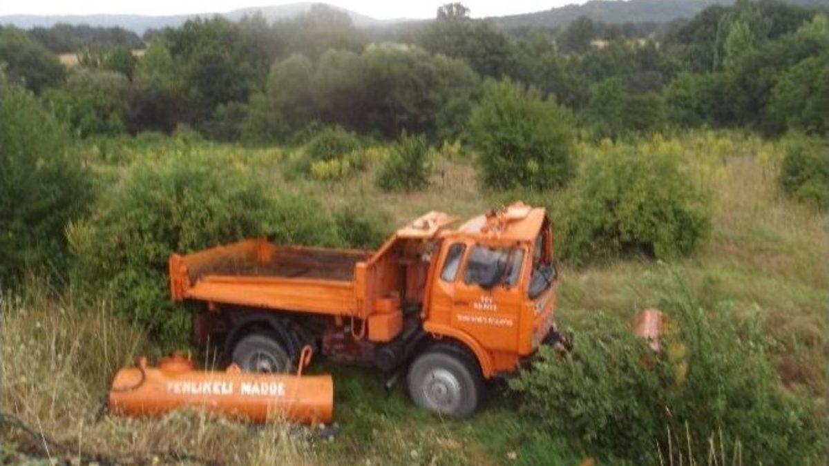 BİLECİK (İHA) – Bilecik’in Pazaryeri ilçesinde, karayollarına ait kamyonun şarampole devrilmesi neticesinde 2 kişi yaralandı.Edinilen bilgiye göre, Sabri Öksüzoğlu idaresindeki karayollarına ait resmi plakalı 16 RZ 144 plakalı kamyon, Pazaryeri-Bozüyük karayolu Franlar köyü mevkiinde, sürücünün direksiyon hakimiyetini kaybetmesi üzerine şarampole devrildi. Kazada, sürücü ve yanında yolcu olarak bulunan Mehmet Özer yaralandı. Yaralılar, olay yerine gelen 112 ambulanslarıyla götürüldükleri Bilecik Devlet Hastanesi’nde tedavi altına alındı.Yaralıların hayati tehlikesinin bulunmadığı öğrenilirken, kazayla alakalı tahkikat sürüyor.