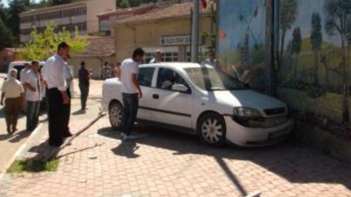 Bilecik'te meydana gelen trafik kazasında bir araç trafo binasına çarptı.