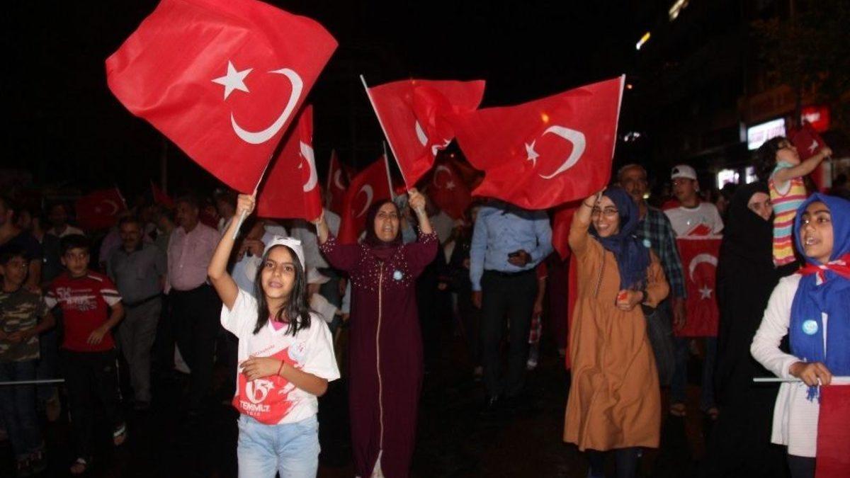 15 Temmuz Demokrasi ve Milli Birlik Günü’nde bir araya gelen Bingöllü vatandaşlar, ellerinde Türk bayrakları ile demokrasi nöbeti tutmaya başladı.Fetullahçı terör örgütünün (FETÖ) milletin kararlı duruşu karşısında başarısızlığa uğrayan hain darbe girişiminin yıldönümünde bir araya gelen on binlerce Bingöllü vatandaş, ellerinde dev Türk bayraklarıyla valilik önünden hareket ederek 15 Temmuz Direniş Meydanına yürüdü.15 Temmuz Direniş Meydanında düzenlenen programa Bingöl Valisi Ali Mantı, Belediye Başkanı Yücel Barakazi, 49. Komando Tugayı Komutanı Ersin Altay, Anadolu Köy Korucuları ve Şehit Aileleri Konfederasyonu Başkanı Ziya Sözen, kurum amirleri, STK temsilcileri, partililer ve on binlerce vatandaş katıldı.Programda konuşan Vali Ali Mantı, "Biz hiçbir zaman dünyada zulüm etmedik. Biz her zaman adaletin timsali bir milletiz. Bize zulüm edilse bile zulme zulümle karşılık vermeyiz. Rahmetli Aliya İzzetbegoviç’in dediği gibi ‘Biz hayatımızda hiç köle kullanmadık, köle de olmadık’ bu millet asla köle olmayacaktır. Hiçbir şeye köle olmayacaktır. Ne dinsel teröre, ne dini kullanan o hainlere ne etniksel kullanan hainlere herhangi bir şekilde kullanan hainler bu millet hiçbir zaman prim vermedi vermeyecektir. Bu milletin mayası sağlamdır. Mayamız sağlam olduğu müddetçe, bir ve beraber olduğumuz müddetçe, birbirimize kenetlendiğimiz müddetçe, hiçbir virüs hiçbir parazit bünyemize giremeyecek bizi yok edemeyecektir" dedi.Vali Mantı’nın ardından söz alan Belediye Başkanı Yücel Barakazi ise, "İnsanoğlu unutkandır çabuk unutur. Bu sene-i devriyede istiyoruz ki, bir kez daha o yaşadıklarımızı, ülke olarak yaşadıklarımızı hatırlayalım. Onları tekrar hafızalarda canlı hale getirelim ki biz kez daha ihanete uğramayalım. O hain çetenin sadece o gece değil de bütün o örgüt tarihleri boyunca, ülkeye neler yaptıklarını nasıl zararlar verdiklerini, kısa kısa anlatacağım. Birincisi ve en önemlisi bizim dini, İslami ve milli kavramlarımızın içini boşalttılar. İşte bu hain çetede bizim İslami kavramlarımızı, bizim milli kavramlarımızın çoğunu asıl anlamlarından koparıp başka anlamlara çektiler. Bunu yaparken zihinlerimizi boşalmak istediler, ruhumuzu teslim almak istediler, imanımızı zayıflatmak istediler ve bizi batılı güçlerin, hainlerin birer piyonu haline getirmek istediler. Ama Allah’a şükürler olsun ki, birçok olayda olduğu gibi 15 Temmuz’da da Rabbimiz bunu vesile kılarak hepimize tekrar kavramların asıl anlamlarını, asıl anlamamız gerekeni, asıl inancı bir kez daha bize hatırlattı" diye konuştu.