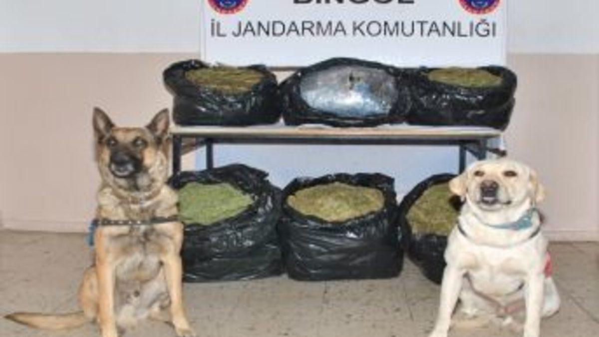Bingöl'de bir araç içerisinde yapılan aramada, 42 kilogram esrar ele geçirildi.Bingöl Valiliği’nden yapılan açıklamaya göre, Bingöl İl Jandarma Komutanlığı'nca Bingöl-Elazığ karayolunda Yolçatı aramada noktasında yapılan kontrollerde şüphelenilen bir araç durdurularak arama yapıldığı belirtildi. Köpek timinin katılımıyla araçta yapılan arama neticesinde 42 kilo 355 gram esrar maddesinin ele geçirildiği kaydedilen açıklamada, 1 şüpheli hakkında adli tahkikatın başladığı ifade edildi. Açıklamada, Bingöl Cumhuriyet Savcısı'nın talimatı doğrultusunda esrar maddelerine el konulduğu bildirildi.
