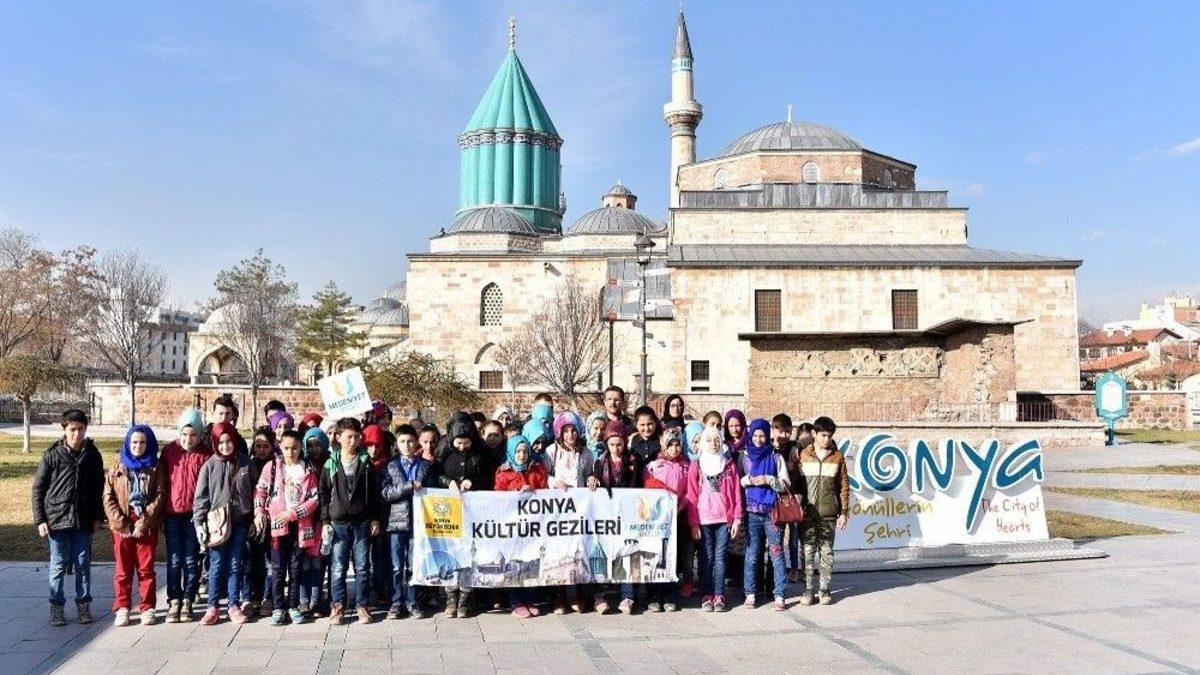 Konya Büyükşehir Belediyesi, Medeniyet Okulu projesi kapsamına 31 ilçeden binlerce ilkokul ve ortaokul öğrencisine Konya’nın tarihi ve kültürel mekanlarını gezdirerek bilgi veriyor. Konya Kültür Gezileri programı, öğrencilerin ecdadın emanet ettiği tarihi mirasımız hakkında daha fazla bilgi sahibi olmasını hedefliyor.Konya Büyükşehir Belediyesi, Konya’nın en büyük kültürel hamlesi olan Medeniyet Okulu Projesi kapsamında eğitim faaliyetlerinin yanı sıra farklı birçok uygulamaya da imza atıyor. Proje kapsamında Konya’nın 31 ilçesinden binlerce ilkokul ve ortaokul öğrencisi, “Konya Kültür Gezileri” ile şehrin tarihi, kültürel ve turistik yerlerini gezme fırsatı buluyor. Konya Büyükşehir Belediye Başkanı Tahir Akyürek, Konya genelinde yürüttükleri Medeniyet Okulu Projesi ile bütün okullarda öğrencilere tarihimizi, kültürümüzü, inancımızı, değerlerimizi anlatan bir değerler eğitimi projesi yürüttüklerini belirterek, buna büyük önem verdikleri söyledi. Öğrencilerin verilen eğitimlerin ve yapılan etkinliklerin yanında mezun olmadan Selçuklu başkenti Konya’nın değerlerini, tarihi mekanlarını tanıması için kültür gezileri düzenlediklerini kaydeden Başkan Akyürek, 31 ilçeden otobüslerle getirdikleri öğrencilerin rehberler eşlinde Mevlana Türbesi, Alaaddin Tepesi, Bilim Merkezi, İstiklal Harbi Şehitleri Abidesi gibi değerleri yerinde görmesini önemsediklerini belirterek, projede emeği geçen herkese teşekkür etti. Konya Kültür Gezileri programı, Konya merkezdeki tarihi ve kültürel mekanların tanıtılmasını, ecdadın emanet ettiği tarihi mirasımız hakkında daha fazla bilgi sahibi olunmasını hedefliyor. Gezilere katılan öğrenciler, ilçelerden tur otobüsleri ile Konya merkeze geliyor ve rehberler eşliğinde Mevlana Türbesi, İstiklal Harbi Şehitleri Abidesi, İrfan Medeniyeti Araştırma ve Kültür Merkezi, Tarihi Mengüç Sokak, Kalehan - Ecdat Bahçesi, Büyükşehir Stadyumu ve Bilim Merkezi ile şehir merkezini geziyor. Mutlu ve unutulmaz anılarla ayrılan öğrenciler arasında hayatlarında ilk kez Konya merkeze ve Hz. Mevlana Türbesi’ne gelenler bile var. Öğrenciler, Konya Büyükşehir Belediyesi’ne bu anlamlı programdan dolayı teşekkür ederken; Şubat ayında başlayan “Konya Kültür Gezileri” 27 Nisan’a kadar devam edecek.