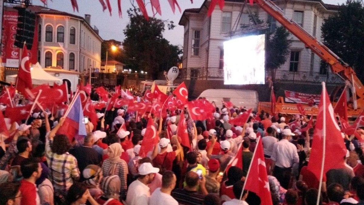 15 Temmuz Şehitler Köprüsü’ne gidemeyen binlerce vatandaş, Üsküdar Kısıklı’da nöbet tutup, kurulan ekranda Cumhurbaşkanı Recep Tayyip Erdoğan’ın konuşmasını izledi. Şehitlerin isimleri okunurken, vatandaşlar hep bir ağızdan “burada” diye bağırdı.Üsküdar Kısıklı’da binlerce kişi demokrasi nöbeti tutuyor. 15 Temmuz Demokrasi ve Milli Birlik Günü nedeniyle törenlerin yapıldığı 15 Temmuz Şehitler Köprüsü’ne gidemeyen binlerce vatandaş, programı buradan izleyerek, demokrasi nöbeti tuttu.Binlerce vatandaş kurulan ekranlardan 15 Temmuz Şehitler Köprüsü’ndeki programı izledi. Vatandaşlar şehitlerin isimleri okunurken, hep bir ağızdan "Burada" dedi. Ellerinde Türk bayrağı ile nöbet tutan vatandaşlar, Cumhurbaşkanı Recep Tayyip Erdoğan’ın konuşmasını da ekrandan izledi.Vatandaşların Cumhurbaşkanı Erdoğan’ın konutunun bulunduğu Kısıklı’daki nöbeti sürüyor.
