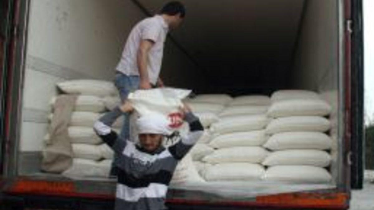 Sabah saatlerinde Yayladağı’na ulaşan TIR’ların her birinde 24 ton un ve battaniye bulunuyor.