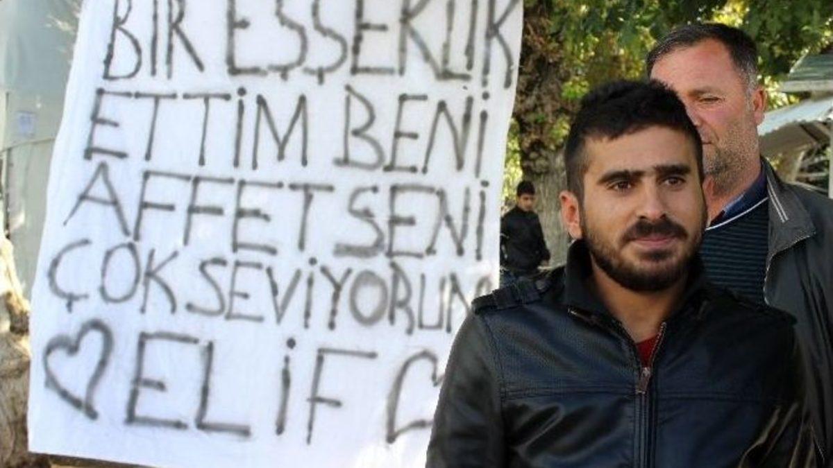 Adıyaman’da bir üniversite öğrencisi kavga ettiği sevgilisi kendisini affetsin diye pankart açtı.Adıyamanlılar sabah Demokrasi Parkı önünden geçerken dikkat çeken bir pankartla karşılaştılar. Parkın girişinde “Bir eşeklik ettim, seni çok seviyorum, beni affet Elif” pankartı görenler şaşkınlıklarını gizleyemedi. Pankartı gören vatandaşlar cep telefonları ile pankartı çekmeye başladı.Bez parçasına “Bir eşeklik ettim, seni çok seviyorum, beni affet Elif” yazan kişinin Adıyaman Üniversitesi İşletme Bölümü 3. sınıf öğrencisi Hüseyin Çetintaş olduğu ortaya çıktı. Üniversite öğrencisi Hüseyin Çetintaş, sevgilisiyle küstüğünü ve barışmak için pankart astığını belirtti.İzinsiz pankart asıldığı yönünde zabıta ekiplerine ihbar yapılıca zabıta ekipleri olay yerine geldi. Zabıta ekipleri pankartı kaldırmak istedi ancak, genç aşık zabıtalardan yarım saat süre istedi. Zabıta ekipleri de gencin bu talebini kırmayarak yarım saat bekledi.Genç aşığın bu davranışına vatandaşlar da destek vererek, Elif isimli kızın gelerek Hüseyin Çetintaş’ı affetmesini istedi. Hatta bazı kişiler kız istemeye giderlerse tatlı ikramını kendilerinin yapacağını belirtti.Genç kız pankartın bulunduğu yerde kalabalığı görünce, karşı kaldırımdan hızlıca uzaklaştı. Hüseyin Çetintaş ise arkasından koşarak uzaklaştı. Zabıta ekipleri de pankartı indirdi.