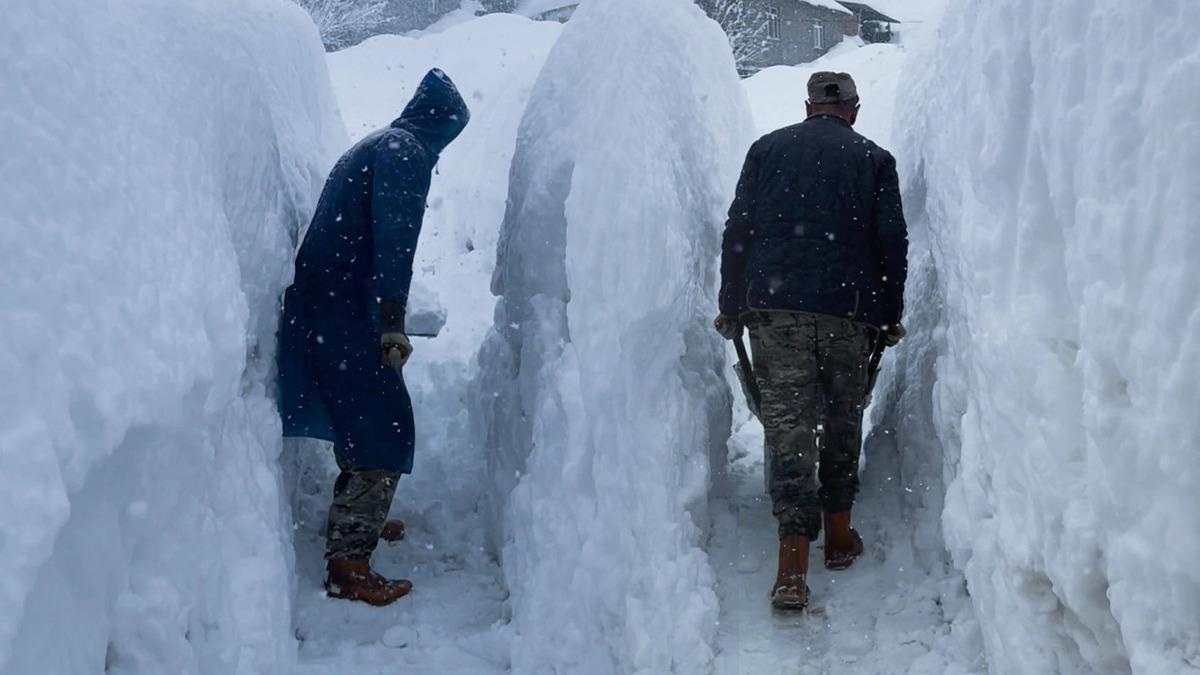 Koyungölü köyü sakinleri de sabahın erken saatlerinden itibaren küreklerle insan boyunu geçen karları kürekler ile temizleyerek evlerinin önünü ve yollarını açmaya çalıştı.