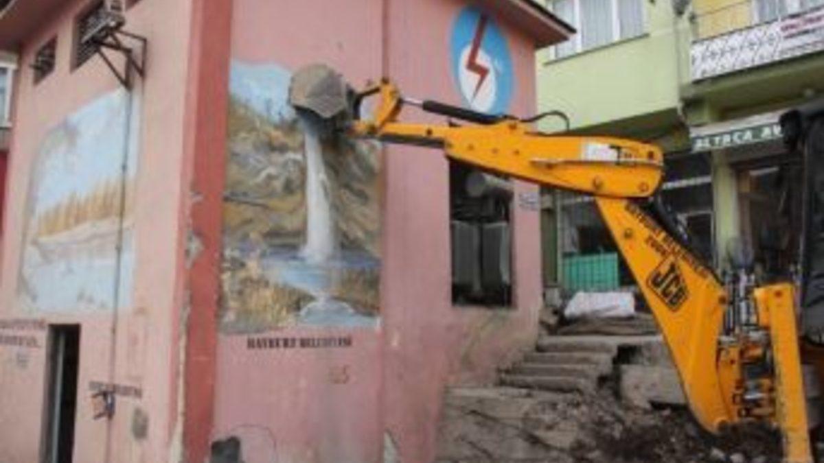Ulu Camii yanında yer alan elektrik trafosu Bayburt Belediyesi tarafından yıkıldı.