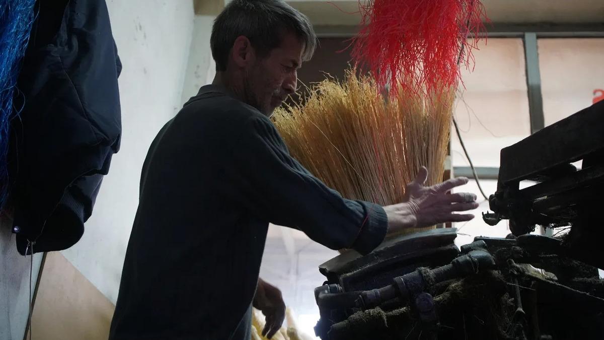 Bizim yaptığımız iş süpürgenin imalatı. Ot olarak geliyor, işlendikten sonra bizlere gelir. Dört aşamadan geçer ve süpürge haline gelir. Vatandaşlar bunu bahçesinde, balkonunu yıkarken kullanıyor. Eskiden alışık olan insanlar evinde bulunduruyor. Hanımlar, halıları dövüp arkasında bu süpürgelerle süpürürlerdi şimdi o durum kalmadı. Robotlar, elektrikli süpürgelerle süpürüyorlar, yıkama zamanı gelince de halı yıkamacılara veriyorlar.