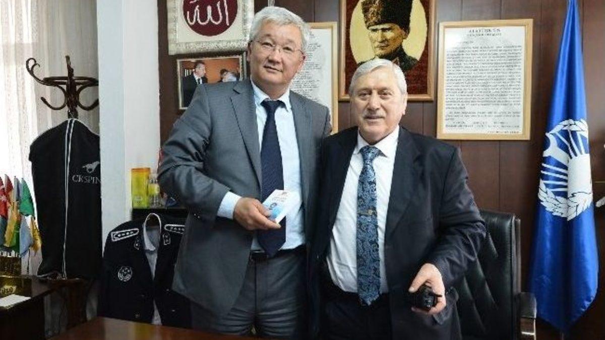 Kırgızistan’ın Başkent’i Bişkek’in Belediye Başkanı Kubanychbek Kulmatov ve beraberindeki heyet, Büyükşehir Belediyesi Zabıta Daire Başkanı Kemal Sonunur’u ziyaret etti.Zabıta Daire Başkanlığı’nda gerçekleşen ziyarette Konuk Belediye Başkanı Kulmatov, Ankara’ya ilk kez geldiğini kaydederek, “Gösterdiğiniz ilgiye teşekkür ederiz. Yeni bir program uygulamaya başladık. Kısa zamanda Bişkek Belediyesi’nde zabıta teşkilatı kurmak istiyoruz. Bugünkü ziyaretimizin amacı zabıta teşkilatını tanımak” dedi.Ankara’nın kardeş kenti olan Bişkek Belediye Başkanını Başkent’te görmekten memnun olduğunu belirten Sonunur da, “Bişkek Belediyesi bünyesinde zabıta teşkilatının kurulması konusunda elimizden gelen yardımı yapacağız” diye konuştu.Zabıta Daire Başkanlığı’nın faaliyetleri hakkında da konuk başkana bilgi veren Kemal Sonunur, çalışmaları vardiyalar halinde gece gündüz sürdürdüklerini anlattı. Resmi üniformalarının caydırıcı bir etkisinin olduğunu da ifade eden Sorunur, sivil zabıta ekipleriyle birlikte Başkent’in düzen ve sağlığı için gerekli önlemleri aldıklarını söyledi.Görüşmenin sonunda Bişkek Belediye Başkanı Kubanychbek Kulmatov’a, “Türkiye Belediyeler Birliği Zabıtanın Cep Kitabı” adlı kitabı hediye eden Kemal Sonunur, Bişkek Belediyesi’nde zabıta teşkilatının kurulması için her türlü yardımı yapacaklarını tekrarladı.Kubanychbek Kulmatov ise Kemal Sonunur’a bir kamçı hediye etti.