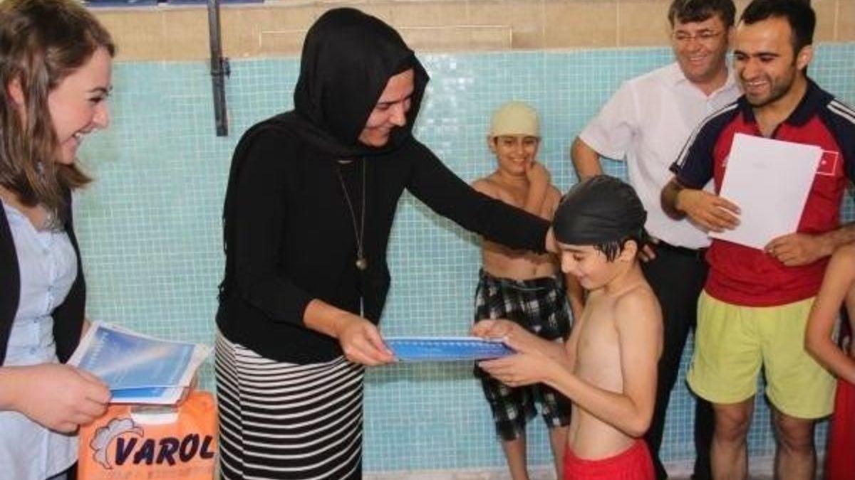 Bitlis Belediyesi tarafından düzenlenen yüzme kursuna katılan 55 öğrenci sertifikalarını aldılar.Bitlis Belediyesi tarafından düzenlenen yüzme kursuna katılan 55 öğrenciye düzenlenen törenle sertifikaları verildi. Bitlis Belediyesi’nin ‘Yüzme Bilmeyen Kalmasın’ şiarıyla 10-16 yaş grubu çocuklar ve gençler için düzenlediği ücretsiz yüzme kursunun bir ay süren eğitimi, sertifikaların verilmesiyle sona erdi. Öğrenciler düzenlenen törende sertifikalarını Belediye Eş Başkanı Nevin Daşdemir’den aldı. Amaçlarının, çocukları ve gençleri sağlıklı bir beden ve ruh haline sahip olarak yetiştirmek ve iyi bir eğitimin yanında kötü alışkanlıklardan arınmış birer birey olmalarını sağlamak olduğunu aktaran Nevin Daşdemir, “Bir başka amacımız da sorumlu sosyal belediyecilik anlayışıyla çocuklarımızın eğitim ve yetiştirilmesinde anne babaların, ailelerin yanında bizlerinde yer almasıdır. Bugün çocuklarımızın günüdür. 55 öğrencimize belediyemiz aracılığıyla yüzmeyi öğrettik. Tüm öğrencilerimizi ayrı ayrı kutluyorum. Yüzmeye devam etmelerini ve ileride iyi bir yüzücü olmalarını diliyorum. Ayrıca kursumuzda emeği geçen eğitmenlerimize ve ilgili müdürlüklerimize tekrar teşekkür ediyorum” dedi.