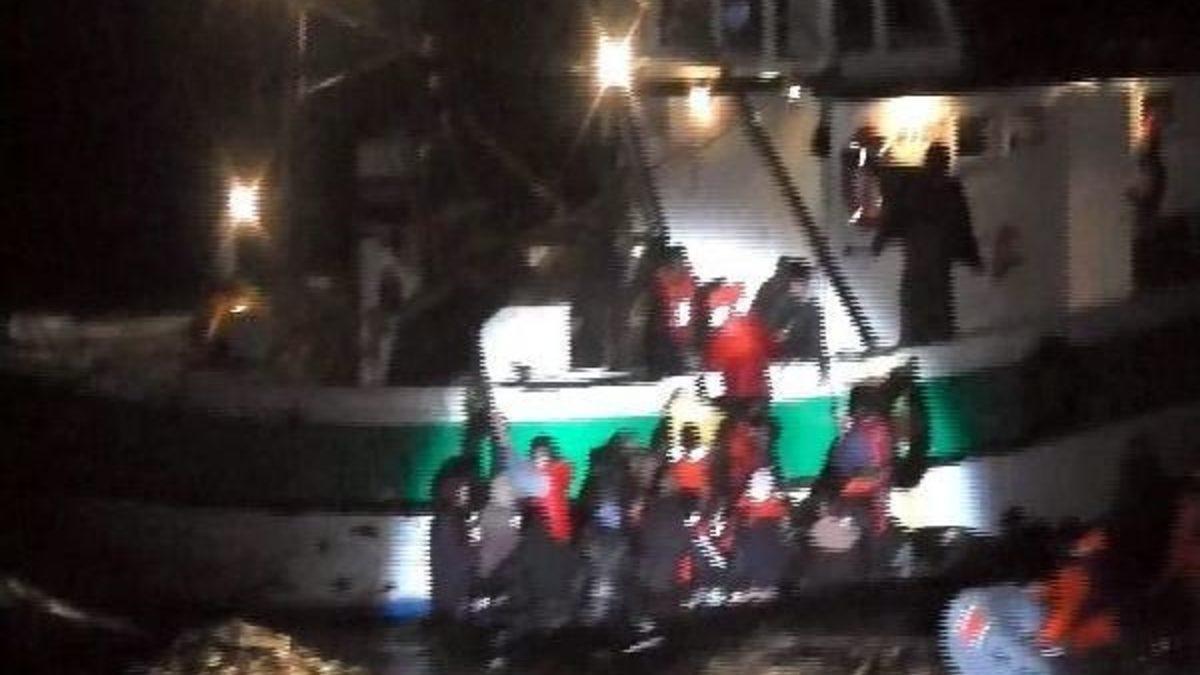 Ege'de meteorolojinin 'fırtına' uyarısına rağmen Muğla'nın Bodrum İlçesi'nden şişme botla denize açılan 27 kaçağın ölümden döndüğü ortaya çıktı. Bodrum Kaymakamlığı'nca dağıtılan ve Sahil Güvenlik ekiplerinin kameralarına yansıyan görüntülerde şişme botun dalgalar arasındaki mücadelesi yansıdı. Sahil Güvenlik ekiplerinin suya indirdiği Zodyak bot ile bölgede bulunan bir balıkçı teknesi yardımıyla kaçakların şişme bottan alınabildiği görüldü.