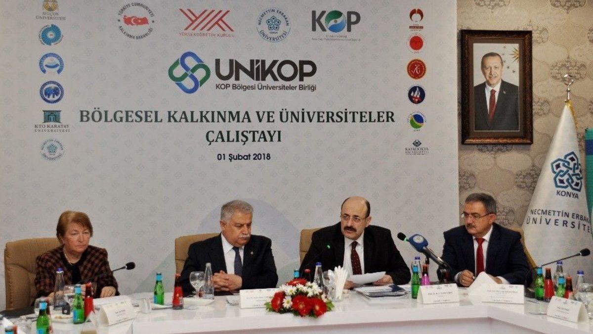 Konya’da düzenlenen “Bölgesel Kalkınma ve Üniversiteler Çalıştayı” sonuç bildirgesinin sunumu ve yapılan genel değerlendirme ile tamamlandı.Dönem başkanlığını Necmettin Erbakan Üniversitesinin yaptığı, UNİKOP’un üyeleri Ahi Evran Üniversitesi, Aksaray Üniversitesi, Bozok Üniversitesi, Kapadokya Üniversitesi, Karamanoğlu Mehmetbey Üniversitesi, Kırıkkale Üniversitesi, Konya Gıda ve Tarım Üniversitesi, KTO Karatay Üniversitesi, Nevşehir Hacı Bektaş Veli Üniversitesi, Niğde Ömer Halisdemir Üniversitesi ve Selçuk Üniversitesi rektörlerinin katılımıyla gerçekleştirilen ‘Bölgesel Kalkınma ve Üniversiteler Çalıştayı’ında sonuç bildirgesi sunuldu ve genel değerlendirme yapıldı. YÖK Başkanı Prof. Dr. M. A. Yekta Saraç kapanış oturumunda, sürdürülebilir bölgesel AR-GE ve yenilik ekosistemin oluşumu için üniversite-kamu-sanayi işbirliğinin önemli olduğuna vurgu yaptı. YÖK’ün misyon farklılaşması projesiyle de uyumlu olarak üniversitelerin AR-GE ve inovasyon odak alanları belirleneceğini söyleyen Saraç; “KOP Bölge Kalkınma İdaresi Başkanlığı ve bölgede faaliyet gösteren kalkınma ajanslarının geçmiş süreçte üniversitelerimize büyük destekleri olmuştur. Önümüzdeki süreçte de bu desteklerin bölgesel kalkınma odaklı olarak artarak devam ettirilmesi önemlidir. Fon kaynaklarının bölge ihtiyaçları gözetilerek ilgili paydaşların katılımı ile uygun planlanması ve etkin kullanımı yönünde üniversite katkısının, rolünün daha da arttırılması beklenmektedir. Bölgesel kalkınma adına kullanılan fonların etkin ve verimli kullanılması adına etki analizlerinin yapılması önemlidir. Üniversitelerin ‘bölgesel kalkınma’ özelinde yapacakları araştırmalar teşvik edilecektir” dedi.“Üniversiteler arasında araştırma işbirlikleri özendirilecektir. Özellikle birbirini tamamlayan nitelikte araştırma kapasitesi oluşturulan alanlarda disiplinler arası işbirliği yapabilmeleri adına teşvik mekanizmaları geliştirilecektir” diyen Saraç, üniversitelerin bölge kalkınma idare başkanlıklarıyla sıkı, samimi bir paydaş ilişkisi sürdürmeleri gerektiğini kaydetti. Atılan her adımın isabetli olmasının, dış paydaşlarla birlikte hareket etmekten geçtiğini hatırlatan Saraç; “İhtisaslaşmaya odaklanmamız gerekli. Bu 12 üniversitenin içerisinden 3’ü yarıştıralım isteriz. Tabii bütün bölgelere yönelik değil pilot olarak buradan başlayalım. Bu projeye talip isteriz diyeceğiz ve 12 üniversiteden mesela 3’ünü seçeceğiz. Herkese, hepsi, her şey Bunlar bizi amacımızdan uzaklaştırıyor. Bütün sistem rekabet üzerine kurgulanması lazım ama haksız rekabet değil haklılık üzerine bu rekabeti tesis etmemiz lazım” diye konuştu.