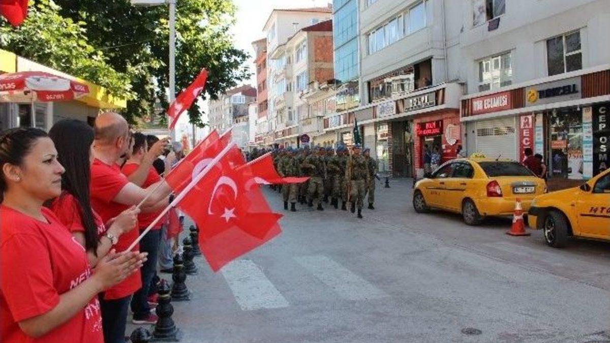 Bolu’da 30 Ağustos Zafer Bayramı’nın 93’üncü yıl dönümü Belediye Meydanı’nda düzenlenen törenle kutlandı.30 Ağustos Zafer Bayramı’nın 93’üncü yıl dönümü tüm yurtta olduğu gibi Bolu’da da coşkuyla kutlandı. Belediye Meydanı’nda düzenlenen törene Bolu Valisi Aydın Baruş, Belediye Başkanı Alaaddin Yılmaz, Kurmay Albay Ali Murat Ersöz, İl Milli Eğitim Müdürü İbrahim Çavuşoğlu, İl Sağlık Müdürü Mahmut Arık, Bolu 2. Komando Tugay Komutanlığı’na bağlı komandolar ve vatandaşlar katıldı. Protokol üyeleri halkı ve askerleri selamlayarak bayramlarını kutladı. Törende konuşan Topçu Binbaşı Ali Aycan, Türk ordusunun Dünya’nın en seçkin ve güçlü ordularından biri olduğunu belirterek, "Türkiye Cumhuriyeti’nin kurulmasına temel teşkil eden, 30 Ağustos 1922’de kazandığımız büyük zaferi milletçe kutlamanın haklı gurur ve heyecanını yaşıyoruz. Dünya’nın sayılı askeri güçlerinden birisi olan silahlı kuvvetlerimiz, her zaman, her yerde ve her şartta verilecek görevleri ifaya hazırdır. 30 Ağustos zaferini bize armağan eden kahramanlıklarla dolu tarihimiz, yeni bir çığır açan bayrağımız, korkusuzluğun, yurtseverliğin bir efsanesi bir destanı olmuştur. Milletçe başta Ulu Önder Atatürk olmak üzere, silah arkadaşları ve aziz şehitlerimizi rahmetle, kahraman gazilerimizi şükran ve minnetle anıyor, hatıraları önünde bir kez daha saygıyla eğiliyor. Şükranlarımızı sunuyoruz" dedi.Tören protokol konuşmalarının ardından tören birliklerinin yürüyüşüyle son buldu.