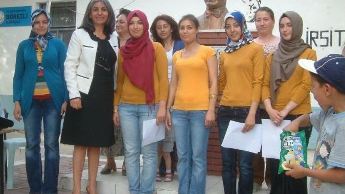 Börezli İlkokulu bahçesi’nde düzenleneninin sonunda hazırlanan sergi gezildi. Halk Eğitimi Merkezi Müdürlüğü’nün köylerde kadınlar için açtığı kurslar sona ererken sergiler de açılmayla başlandı. Börezli köyünde Nurcan Narin’in öğretmenliğini yaptığı 6 aylık kursu bitiren 15 bayan da başarı belgelerini aldı. Törenin açılışında bir konuşma yapan Halk Eğitimi Merkezi Müdürü Karanfil Bilgin, katılımcılara teşekkür etti. Başarı belgelerinin verilmesinin ardından bayanların el ürünlerinin yer aldığı sergi gezildi. Sergide yer alan eserlerin, bir bölümünün çeyiz olarak kullanılacağı açıklanırken bazılarının da satılacağı bildirildi. Sergi açılış törenine Belediye Başkan Vekili Oya Özarkon, İlçe Milli Eğitim Müdürü Bünyamin Uruç, Müftü Oğuz Metin, Şube Müdürleri Zekeriya Eşkikara ve Mehmet Karabıyık ile Bahçeşehir Koleji Müdürü Semra Talay, Halk Eğitimi Merkezi Müdürü Karanfil Bilgin ve köy muhtarı Halil Aydın ile vatandaşlar katıldı.