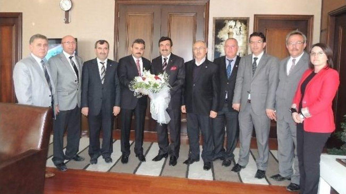 Çorum Ticaret Borsası yönetim kurulu üyeleri, Belediye Başkanı Muzaffer Külcü’yü ziyaret etti.Ticaret Borsası Başkanı Ali Bektaş, ziyarette 30 Mart Mahalli İdareler Seçimleri’nde ikinci kez belediye başkanı seçilen Muzaffer Külcü’yü kutlayarak yeni görevinde başarılar diledi.Borsa olarak amaçlarının tarım ve hayvancılığı geliştirerek hem Çorum’un hem de ülke ekonomisine katkıda bulunmak olduğunun altını çizen Bektaş, bu konuda toplumun tüm kesimleriyle işbirliği yapmaya hazır olduklarını açıkladı. Bektaş, borsa kompleksinin alt yapı eksikliklerinin giderilmesinde verdiği katkılardan dolayı Başkan Külcü’ye teşekkür etti.Belediye Başkanı Muzaffer Külcü ise, Ticaret Borsası ile birlikte kente bölgenin en modern hayvan pazarlarından birisini kazandıracaklarını belirtti. Külcü, borsanın ticaret hacminin artmasının Çorum ekonomisine olumlu yansımalarının bulunduğunu belirtti.Ziyarette Ticaret Borsası Genel Sekreteri Funda Ertekin ve yönetim kurulu üyeleri hazır bulundu.