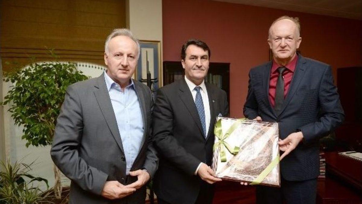 Bosna Hersek’in Olovo Belediye Başkanı Cemal Memadiç, Osmangazi Belediye Başkanı Mustafa Dündar’ı ziyaret etti. Mayıs ayında Bosna’da yaşanan sel felaketinde yaraların sarılması için vermiş olduğu desteklerden dolayı Dündar’a teşekkür eden Cemal, Osmangazi ve Olovo belediyeleri arasında ilişkileri güçlendirmek istediklerini söyledi.Makamında ağırladığı misafirlerinin ziyaretinden dolayı büyük mutluluk duyduğunu ifade eden Başkan Dündar, “Osmangazi Belediyesi olarak Balkan ülkeleri ile sıkı ilişkiler içerisindeyiz. Bulgaristan, Yunanistan, Bosna Hersek, Makedonya ve Kosova’da birçok kardeş belediyemiz var. Bosna Hersek’te de Stari Grad ve Doboy belediyeleri bizim kardeş belediyelerimiz. Stari Grad Belediyesi ile uzun süredir karşılıklı ilişkiler içerisindeyiz. Doboy Belediyesi ile de yeni kardeş belediye olduk. Geçtiğimiz aylarda yaşanan sel felaketinde de yaraların sarılması adına çeşitli çalışmalar yürüttük. İhtiyaçlara cevap vermeye çalıştık” dedi.Türkiye Cumhuriyeti ve Bosna Hersek arasında ikili ilişkilerin ileri düzeyde olduğunu kaydeden Başkan Dündar, “Biz de yerel yöneticiler olarak iki ülke arasındaki ilişkilerin çok daha iyi seviyelere gelmesi adına bir çok proje geliştiriyoruz ve bu konuda itici bir güç oluyoruz. Bugün bu ziyaretinizle başlayan ilişkilerimizi devam ettirmeyi isteriz. Biz de Bosna Hersek’e gelerek sizleri ziyaret etmek ve karşılıklı ilişkileri daha da güçlendirmek isteriz” diye konuştu.Olovo Belediye Başkanı Cemal Memadiç de geçtiğimiz Mayıs ayında yaşanan sel felaketinin yaralarının sarılmasında Osmangazi Belediyesi’nin en büyük destekçilerinden biri olduğunu belirterek, “Osmangazi Belediyesi, yardımlarını bizlerden esirgemeyerek birçok yardım TIR’ını bölgeye gönderdi. Yapılan yardımlar ihtiyaç sahiplerine ulaştı. Bölge halkı ve kendim adına sizlere çok teşekkür ederim” dedi.Bursa ve Olovo arasında ticari münasebetleri geliştirmek istediklerini ifade eden Cemal Memadiç, “Bosna Hersek Tekstil ve Deri Üreticileri Derneği heyetinin başkanı olarak Bursa’da, iş adamlarıyla çok önemli ve başarılı görüşmeler gerçekleştirdik. Bursa’nın tekstil potansiyelinden etkilendik. Yapmış olduğumuz ziyarette gördük ki tekstil sektörü iki ülkenin ekonomik ilişkilerinin çok daha ileri seviyeleri taşınması adına oldukça uygun. Bu konu üzerine yoğunlaşarak iki ülke arasındaki bağları daha da güçlendirmek istiyoruz. Bursalı iş adamlarıyla ortaklık kurmaya hazırız. Sizleri de Olova’ya davet ediyorum. Heyetinizle birlikte lütfen ziyaretimize gelin. İkili ilişkilerimizi geliştirelim” ifadelerini kullandı.Ziyaretin ardından Olovo Belediye Başkanı Cemal Memadiç, Başkan Dündar’a, Bosna Hersek’e ait simge mekanların bakır üzerine işlendiği bir tablo hediye etti.