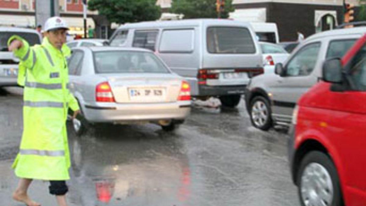 Erzincan’da akşam saatlerinde etkili olan yağmur kentin ana caddelerini ve sokakları göle çevirdi. Yağış nedeni ile sıkışan trafiğe müdahale etmek isteyen trafik polisi, ayakkabılarını çıkartıp otomobillere yol vermeye çalışınca ilginç bir görüntü ortaya çıktı.