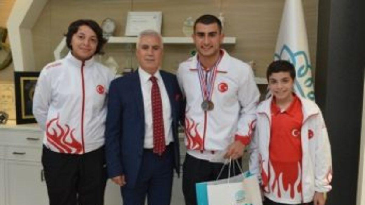 Nilüfer Belediye Başkanı Mustafa Bozbey, Tekerlekli Sandalye Eskrim Dünya Şampiyonası’nda derece elde eden Nilüfer Belediyesi Tekerlekli Sandalye Eskrim Takımı sporcuları Hakan Akkaya ve Mehmet Bera Şeker’ı makamında kabul etti.Hollanda’da düzenlenen Tekerlekli Sandalye Eskrim Dünya Şampiyonası’nda U23 erkekler epe branşında dünya ikincisi, U23 erkekler flöre branşında da dünya üçüncüsü olan Hakan Akkaya ile U17 erkekler flöre müsabakalarında şampiyonayı 14’üncü sırada tamamlayan Mehmet Bera Şeker, Başkan Bozbey ile başarılarını paylaştı.Antrenör Kader Yıldırım’ın da hazır bulunduğu ziyarette, Mustafa Bozbey, başarılı sporcuları tebrik ederek, “Sporcularımızın başarıları göğsümüzü kabartıyor. Sporcularımız katıldıkları şampiyonalarda Nilüfer’i, Bursa’yı, Türkiye’yi temsil ediyorlar. İnanıyorum ki ileride daha büyük başarılar elde edecekler. Başarı için sporcularımızı motive eden, hazırlayan antrenörümüz Kader Yıldırım’a da yürekten teşekkür ediyorum” dedi.