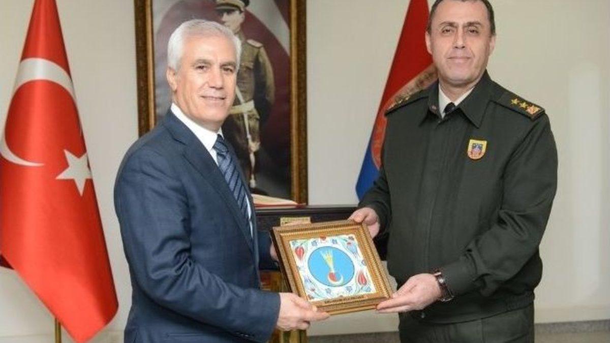 Nilüfer Belediye Başkanı Mustafa Bozbey, Bursa Garnizon ve Jandarma Bölge Komutanı Tümgeneral Seyfullah Saldık’ı ziyaret etti.Nilüfer Belediye Başkanı Mustafa Bozbey, nezaket ziyaretleri çerçevesinde Bursa Garnizon ve Jandarma Bölge Komutanı Tümgeneral Seyfullah Saldık’ı Yalova Yolu’nda bulunan komutanlık binasında ziyaret etti. Şeref defterini imzalayan Nilüfer Belediye Başkanı Mustafa Bozbey, Tümgeneral Seyfullah Saldık’a görevinde başarılar diledi. Saldık da Bozbey’e jandarma armasının yer aldığı çini tablo hediye etti.Belediye başkan yardımcılarının da hazır bulunduğu ziyarette, Başkan Bozbey ve Tümgeneral Saldık, komutanlık binasındaki sergi salonunu gezdi.