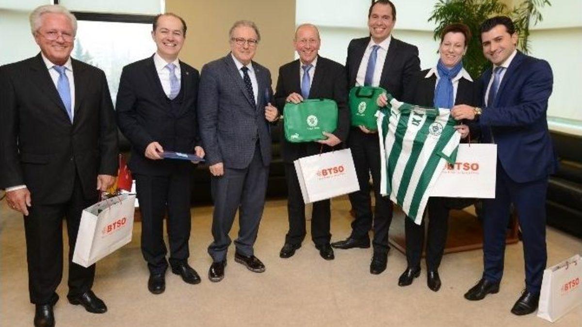 Bursa Ticaret ve Sanayi Odası (BTSO), Almanya Mittlerer Niederrhein Bölgesi Sanayi ve Ticaret Odası Başkan Yardımcısı Wolfram Lasseur ve beraberindeki heyeti ağırladı.Türkiye’nin en önemli ihracatçı şehirlerinden olan Bursa’da temaslarda bulunan Mittlerer Niederrhein Bölgesi Sanayi ve Ticaret Odası heyeti, BTSO’yu ziyaret etti. Alman heyeti ağırlayan BTSO Yönetim Kurulu Üyeleri Fahrettin Gülener ve Aytuğ Onur, BTSO’nun makro projeleri ve çalışmaları hakkında bilgi verdi."ALMANYA’YA İHRACATIMIZ, İTHALATIMIZDAN DAHA FAZLA"Fahrettin Gülener, Bursa’da 135 Alman sermayeli firmanın faaliyet gösterdiğini söyledi. Bursa’dan Almanya’ya ihracat yapan 637 firma bulunduğunu anlatan Gülener, Bursa ve Almanya arasındaki ihracatın 2014 yılı itibariyle 2 milyar Dolar, ithalatın ise 1,5 milyar Dolar olduğunu vurguladı. Almanya’nın dünyanın en önemli ekonomik güçlerinden biri olduğunu ifade eden Gülener, “Almanya, bizim en önemli ticaret partnerlerimizden birisi. Bursa ile Almanya arasındaki ilişkiler her geçen gün gelişiyor. Bu üst düzey ziyaretlerin de iki ülke arasındaki işbirliğini daha da güçlendireceğine inanıyorum” dedi."FARKLI SEKTÖRLERE DE YÖNELMELİYİZ"Türkiye ile Almanya arasında daha çok inşaat, madencilik, imalat, sanayi, tarım, hayvancılık ve gıda sektörlerinde işbirliğinin olduğunu belirten Aytuğ Onur, “İşbirliği yapılan sektörlerin sayısını artırmalıyız. İnanıyorum, ikili iş görüşmeleri ülkeler arasındaki ticari ilişkiyi daha da artıracaktır” diye konuştu."ÜRÜNLERİNİZİ BÖLGEMİZDE GÖRMEK İSTERİZ"Wolfram Lasseur, Mittlerer Niederrhein Bölgesi hakkında bilgiler aktardı. Bölgede ağırlıklı olarak tekstil ve makine sektörlerinde faaliyet gösteren firmaların olduğuna dikkat çeken Lasseur, sadece ekonomik değil, eğitim anlamında da işbirliği yapabileceklerini vurguladı. Bursa ile Almanya arasındaki ilişkilerin güçlü olduğunu vurgulayan Lasseur, “Bursa’da çok sayıda Alman sermayeli firma olduğunu biliyoruz. Bizler de Bursa markalı ürünleri ülkemizde ve bölgemizde görmek istiyoruz. Her türlü işbirliğine hazırız” dedi.