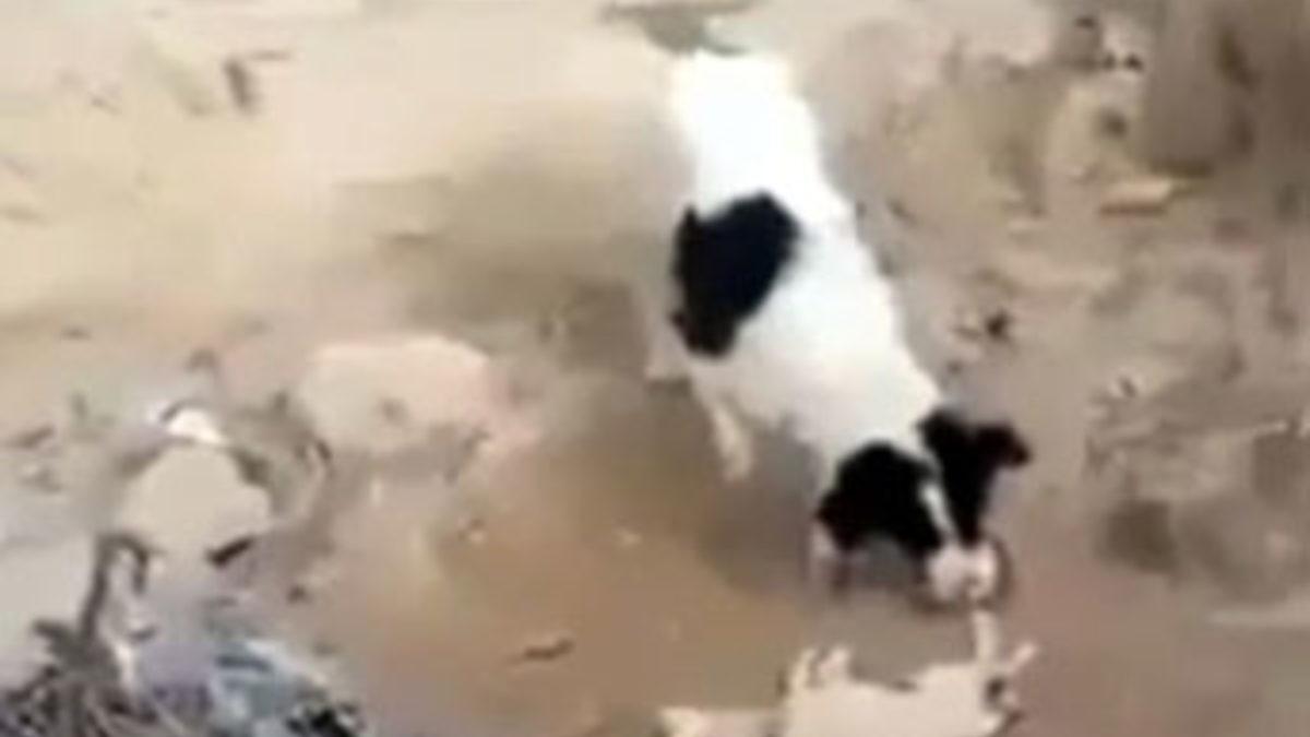 Anne köpeğin ölen yavrusunu toprakla kapatarak gömmesi amatör kameraya yansıdı.